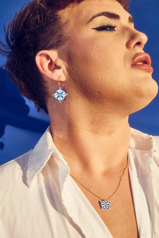 Pendientes azulejo pintado a mano