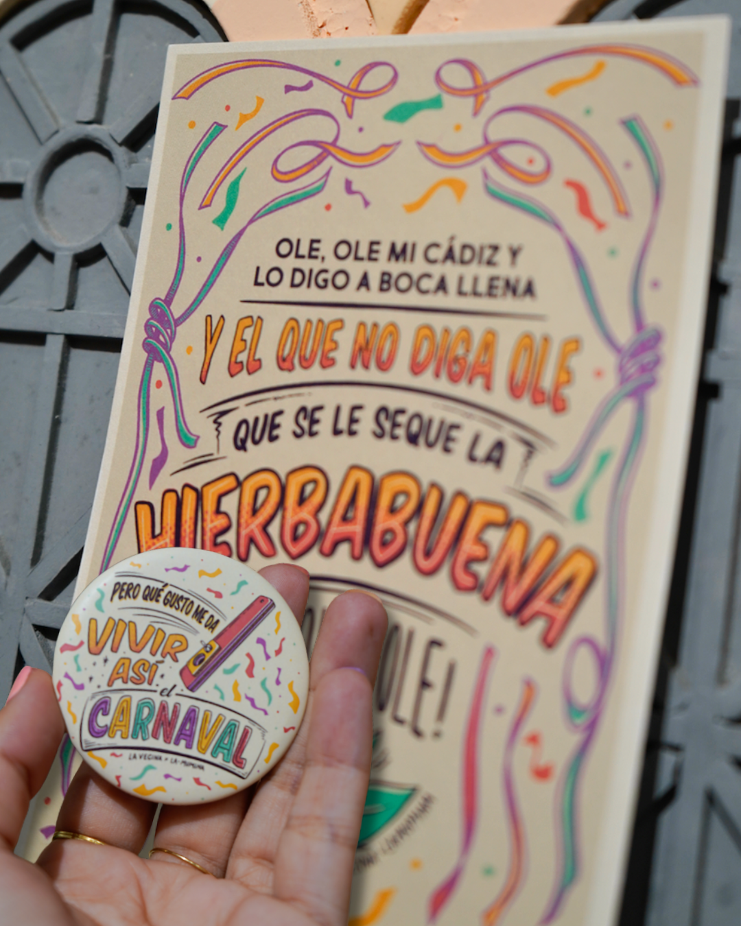 Más baratito pa tiPostal + Chapa PEQUE Que se le seque la Hierbabuena Carnaval de Cádiz