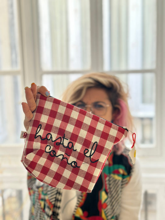 Vichy rosa letra amarilla - Hasta el coño - Neceser flúor