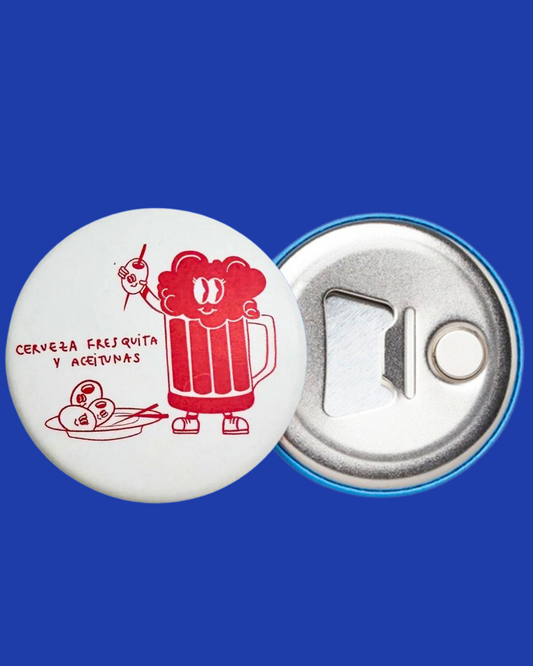 Imán abridor Cerveza fresquita y aceitunas