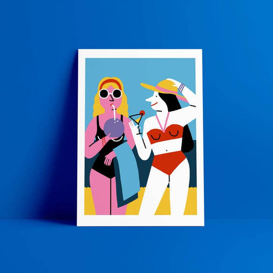 Lámina Chicas en la playa con coco