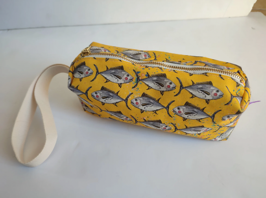 Vichy amarillo piña letra coral - Hasta el coño - Neceser