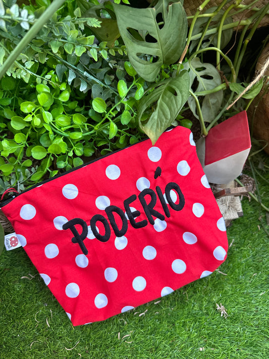 Turquesa lunares letras rojo - Que agusto estoy - Neceser