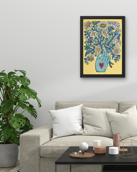 AgotaitoLámina Mano azul - fondo amarillo