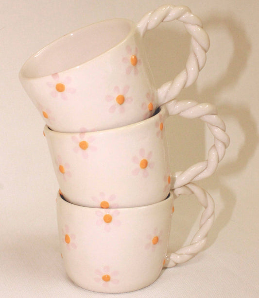 AgotaitoTaza con margaritas y asa trenzada