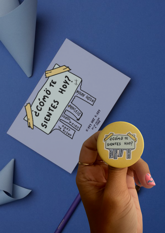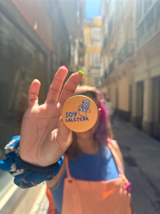 Postal + Chapa PEQUE Qué bonita está mi Cádiz y vivir así en Carnaval