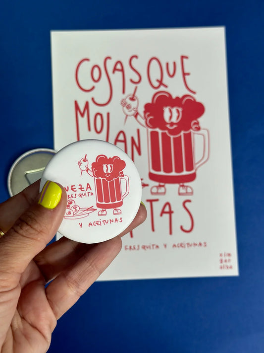 Postal + Chapa PEQUE Que se le seque la Hierbabuena Carnaval de Cádiz