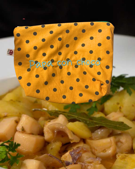 Papa toiletry bag with choco Cádiz - Black polka dot mustard
