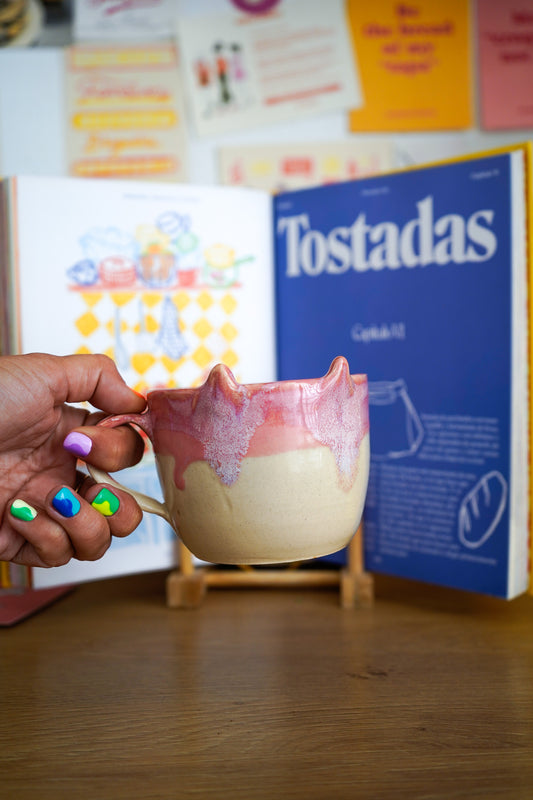 Taza forma de gato rosa