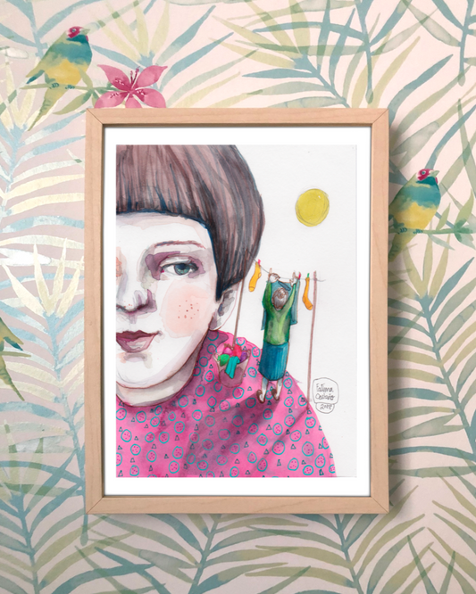 Lámina Chica con su abuela tendiendo