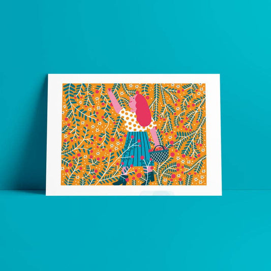 Lámina Chica con cesta en flores y plantas