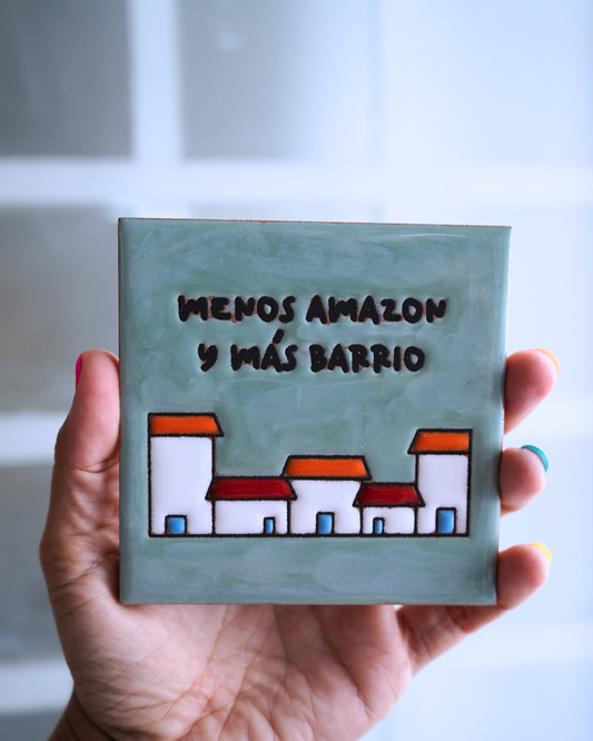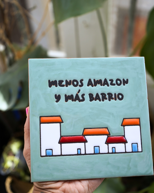 Azulejo de cerámica mediano MENOS AMAZON Y MÁS BARRIO