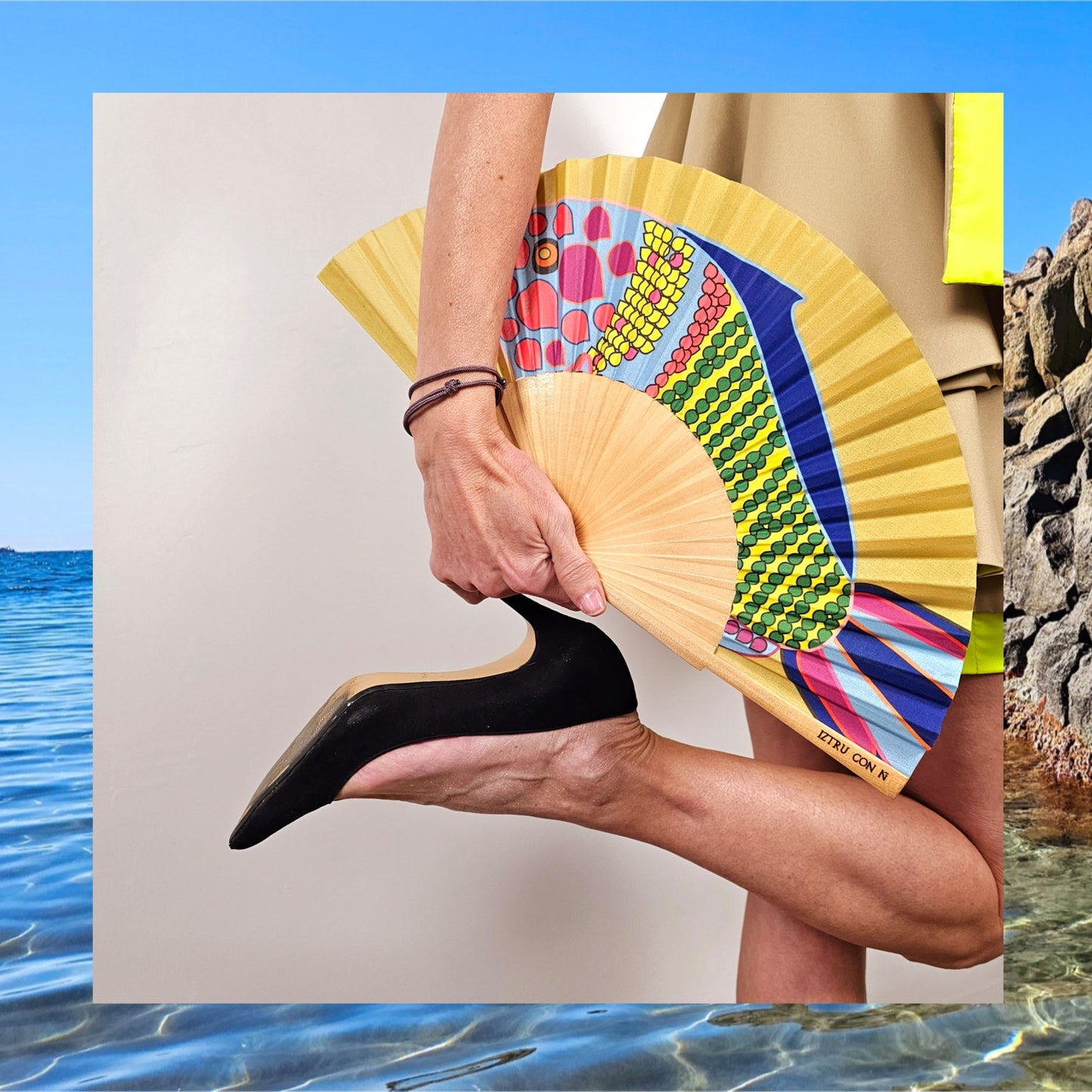 Este abanico está inspirado en los veranos de Urtzi en Cabo de Gata, cuando era peque que iba con la family a Almería.
