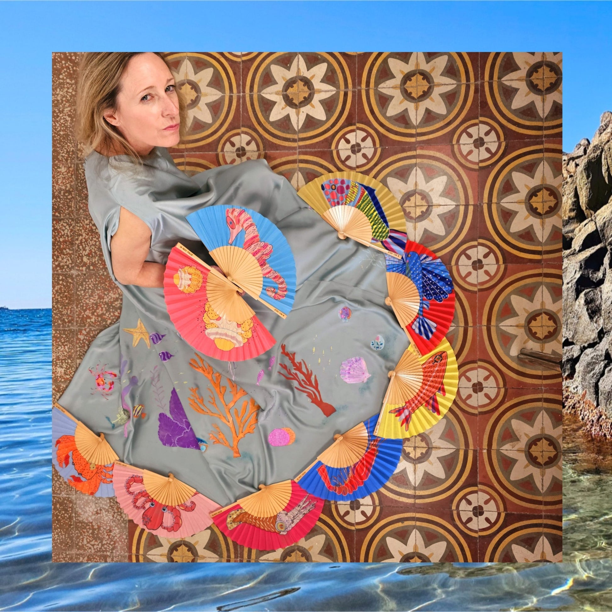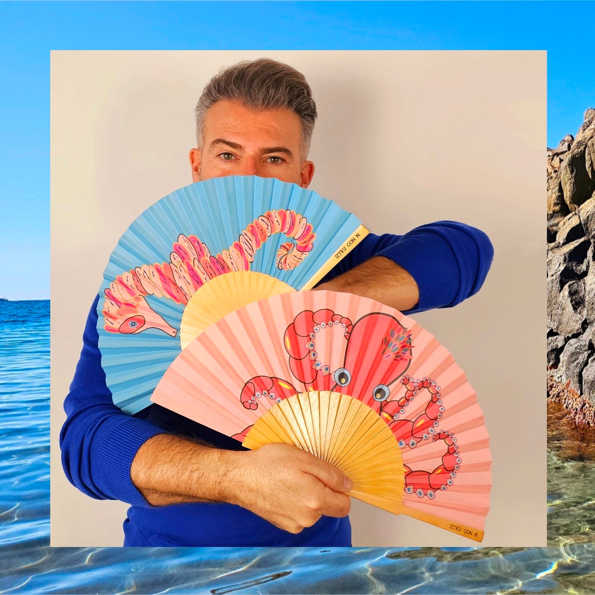 Este abanico está inspirado en los veranos de Urtzi en Cabo de Gata, cuando era peque que iba con la family a Almería.