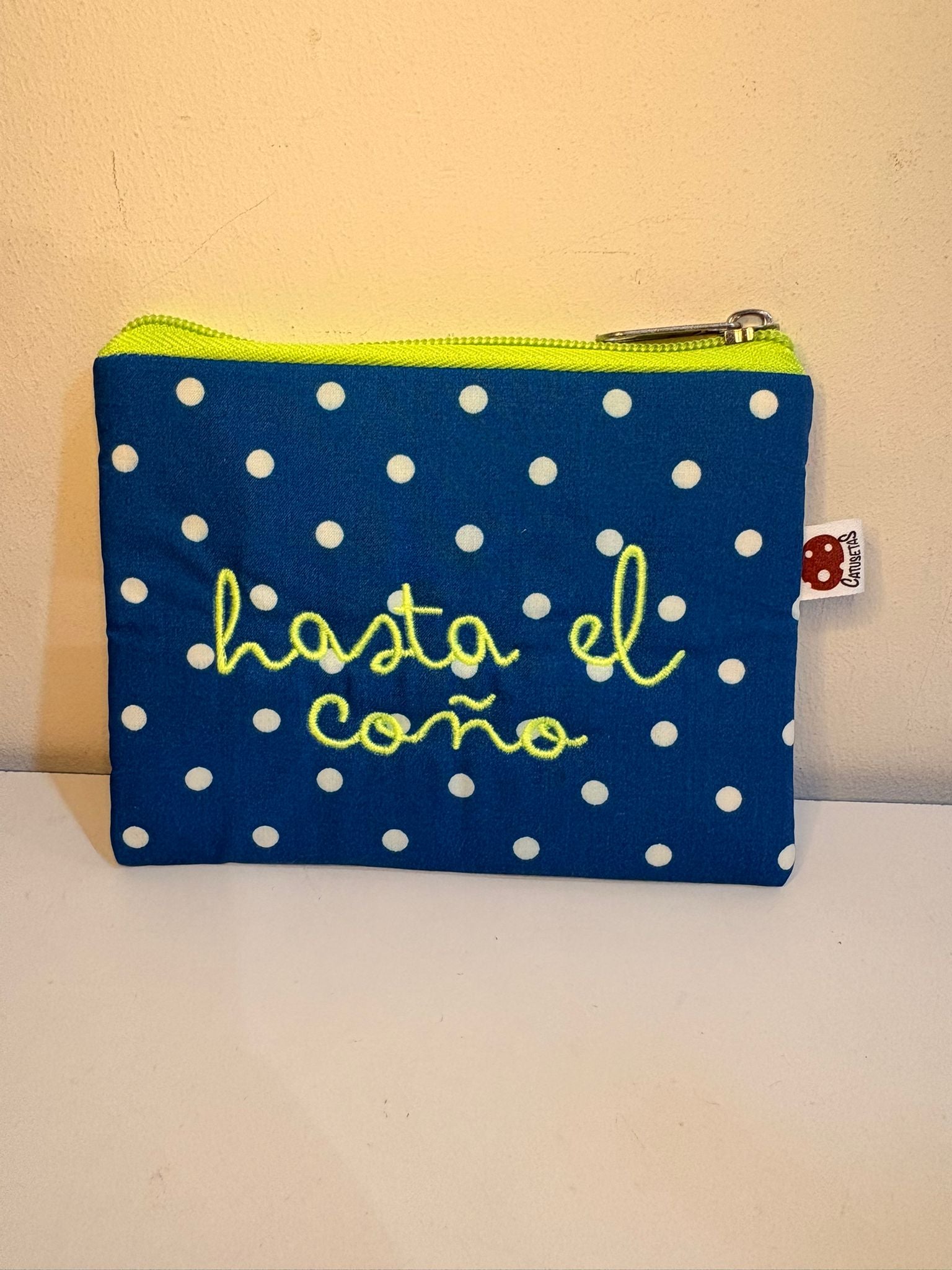Azul lunares blancos letra amarilla - Monedero - Hasta el coño