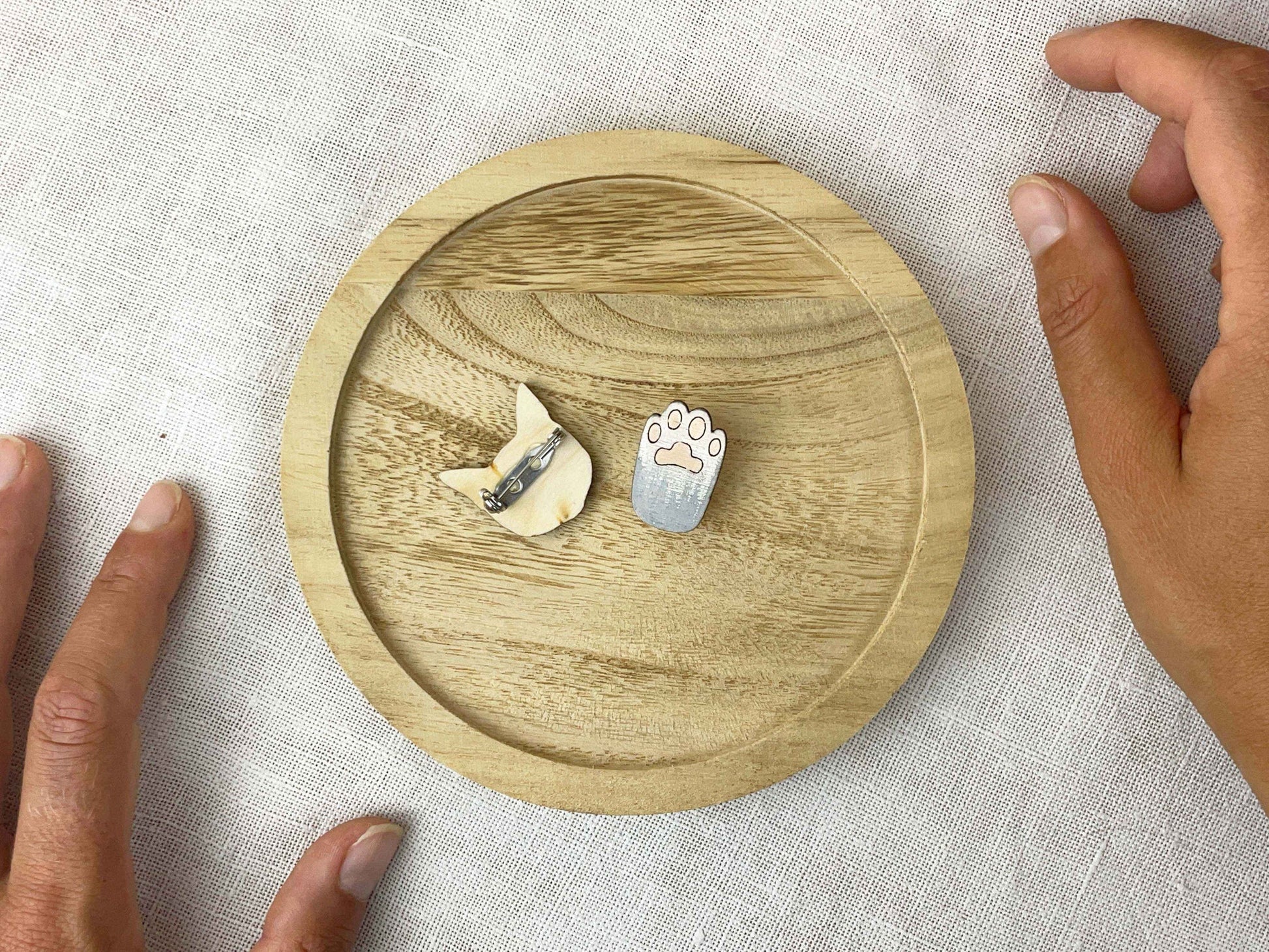 - 👉 Fabricado con madera con certificación FSC, cada broche se corta con precisión a láser para realzar los detalles y luego se pinta a mano con cariño,