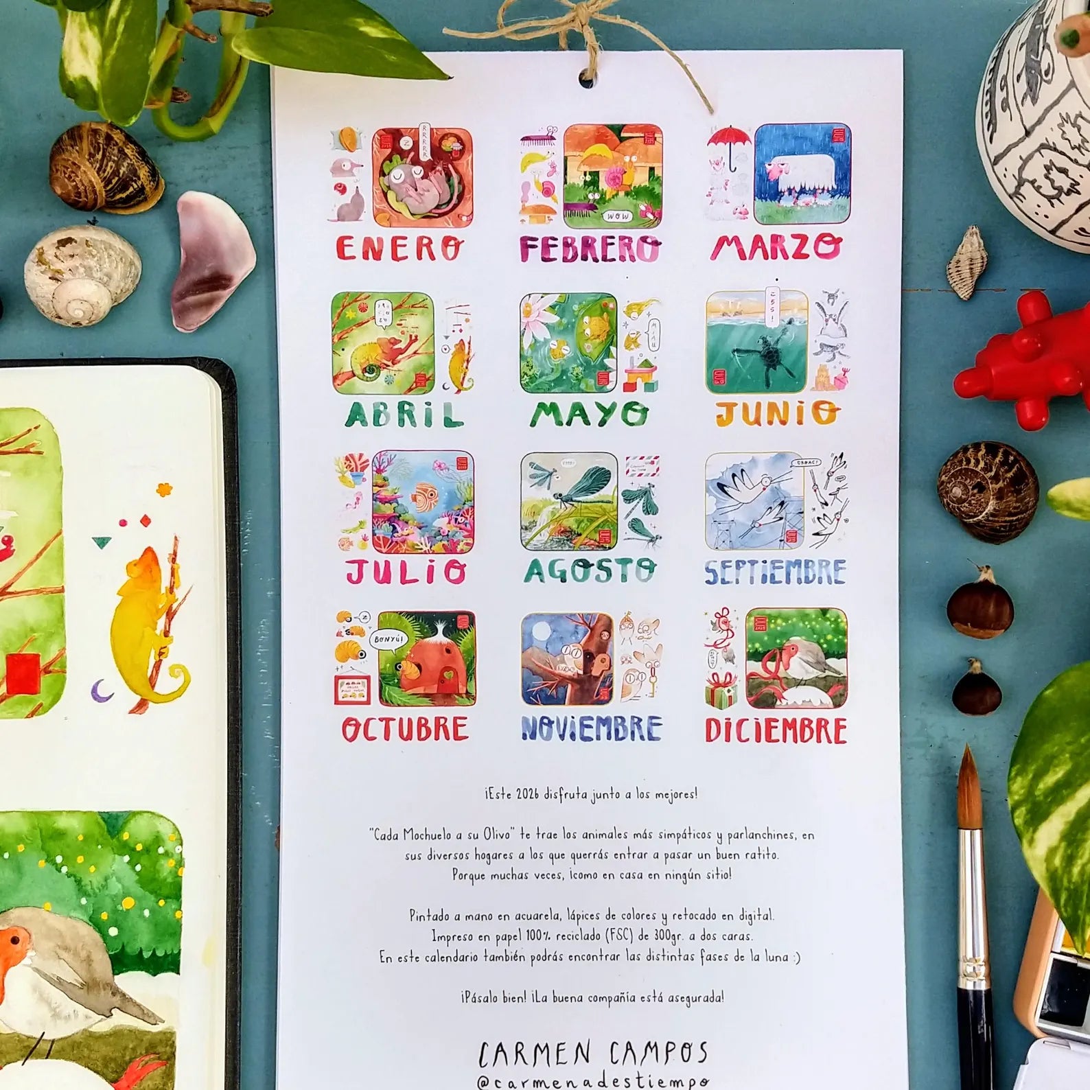 En las páginas de este calendario te traen un montón de animales mu simpáticos, todos en sus casitas🏠