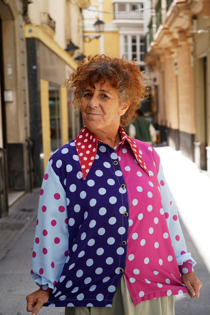 Camisa de Lunares azul marino y morado