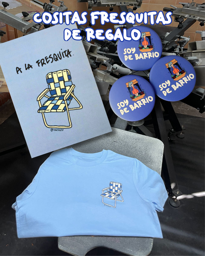 ¡Y a la fresquita es llevarte de regalo el kit completo: postal y chapa de barrio!