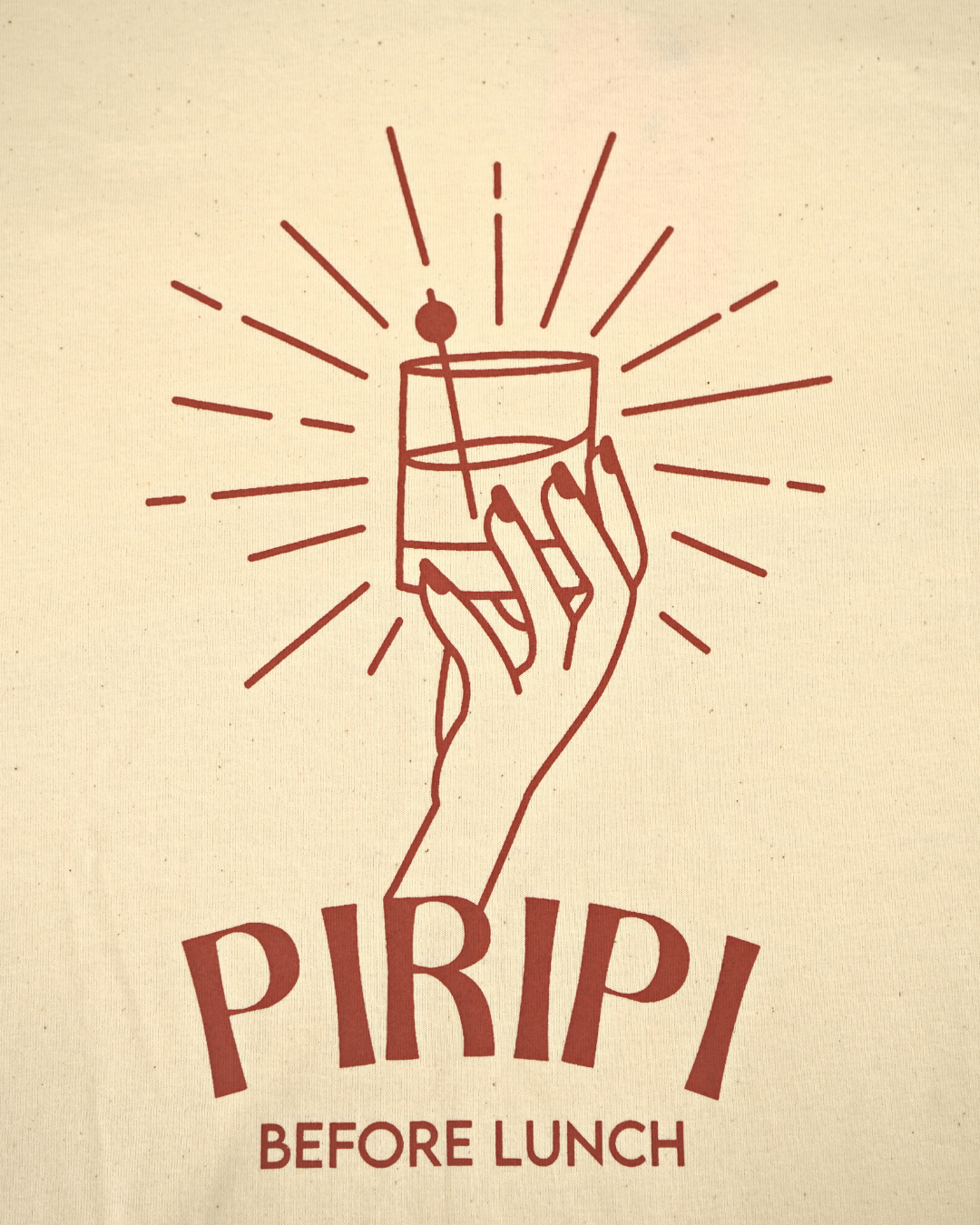 A cami in a natural tone that is a tribute to those pre-meal drinks that stretch to infinity and beyond. 🍷👕😎