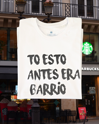 "To this era barrio" reminds us of the times when the streets were known by their neighbors and the community flourished and wearing it is an act of solidarity with your neighborhood and your people.