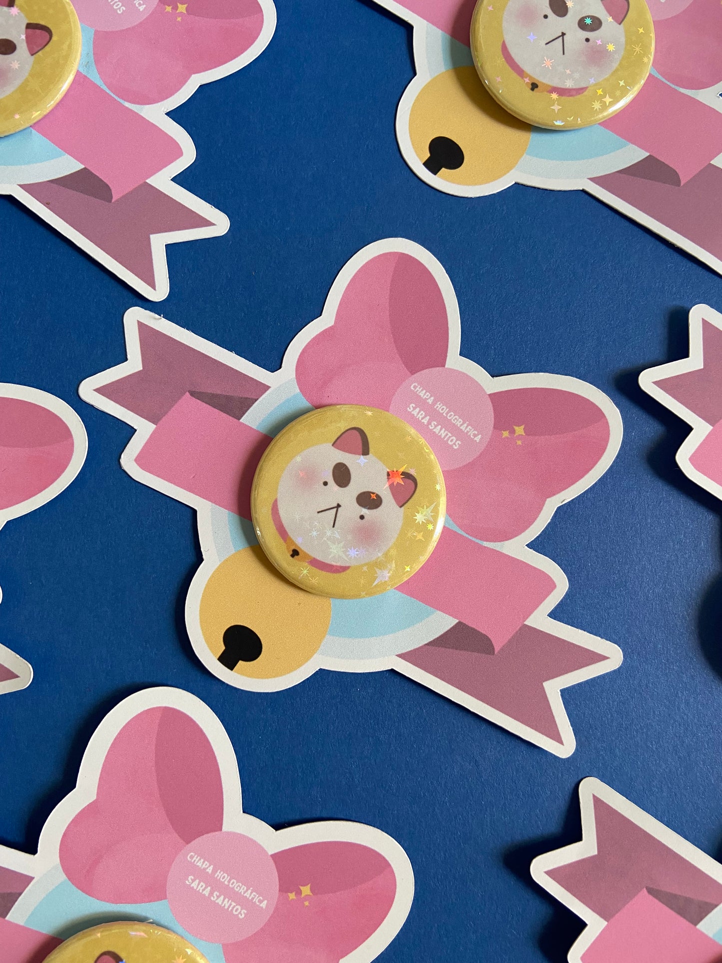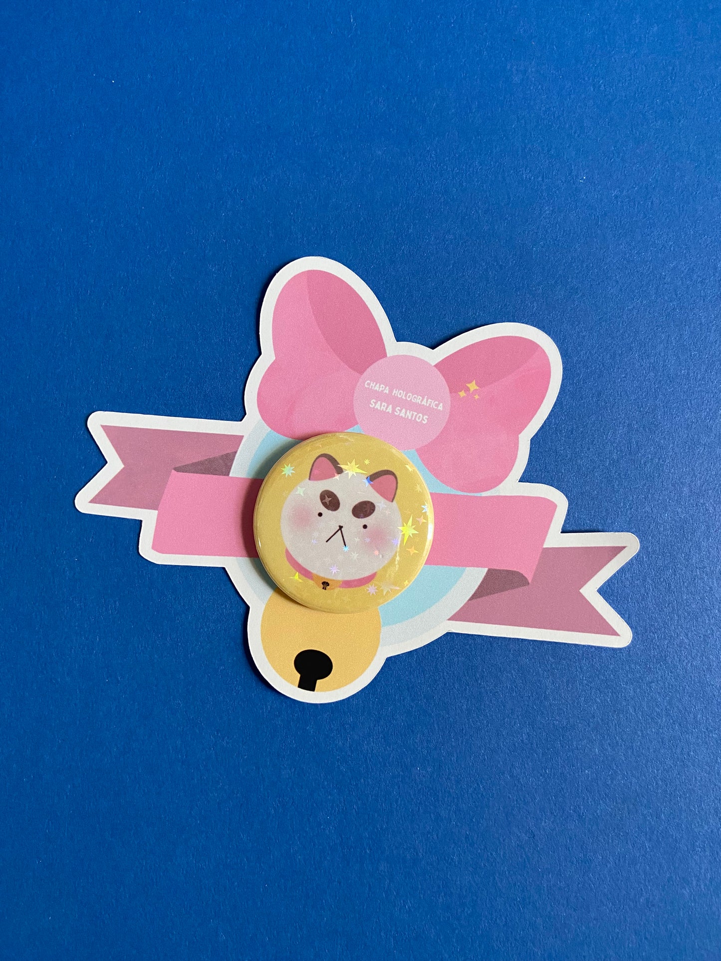 - 👉 Chapita Holográfica de un gatito mu guay, hecha a mano
