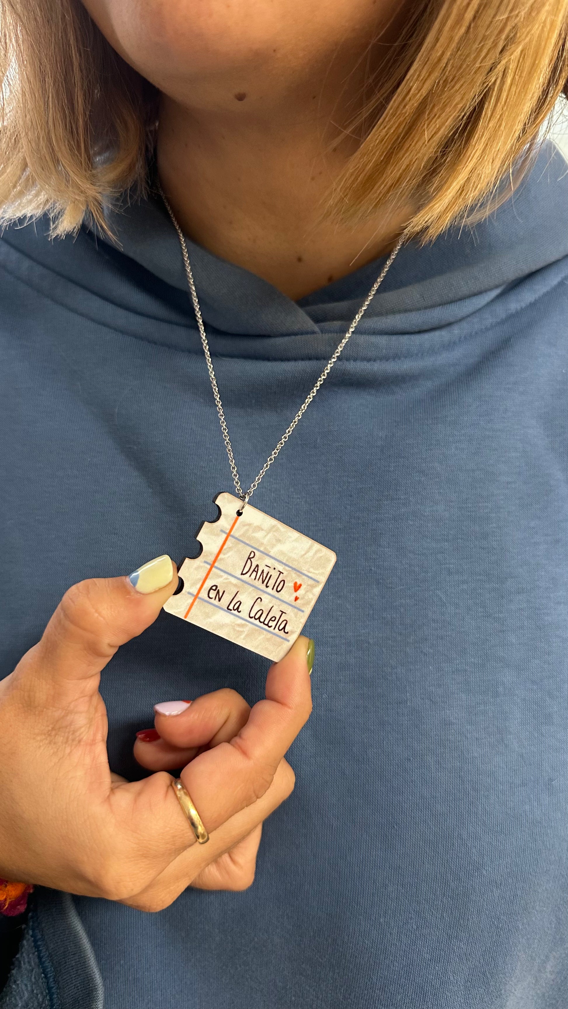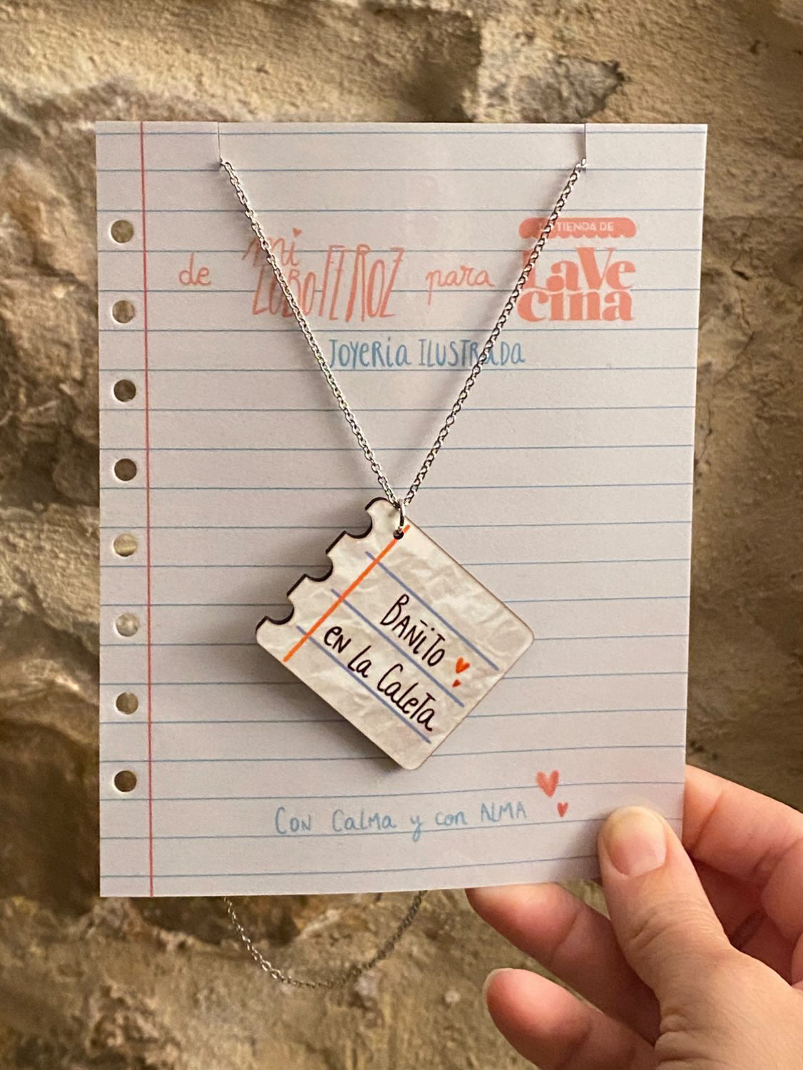 - Collar ilustrado en madera, colabo única de la tienda y mi lobo feroz