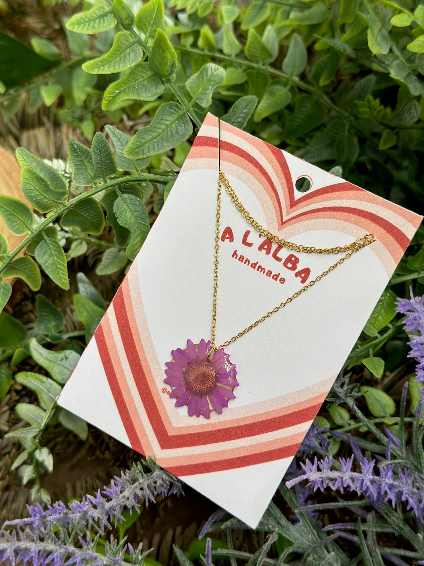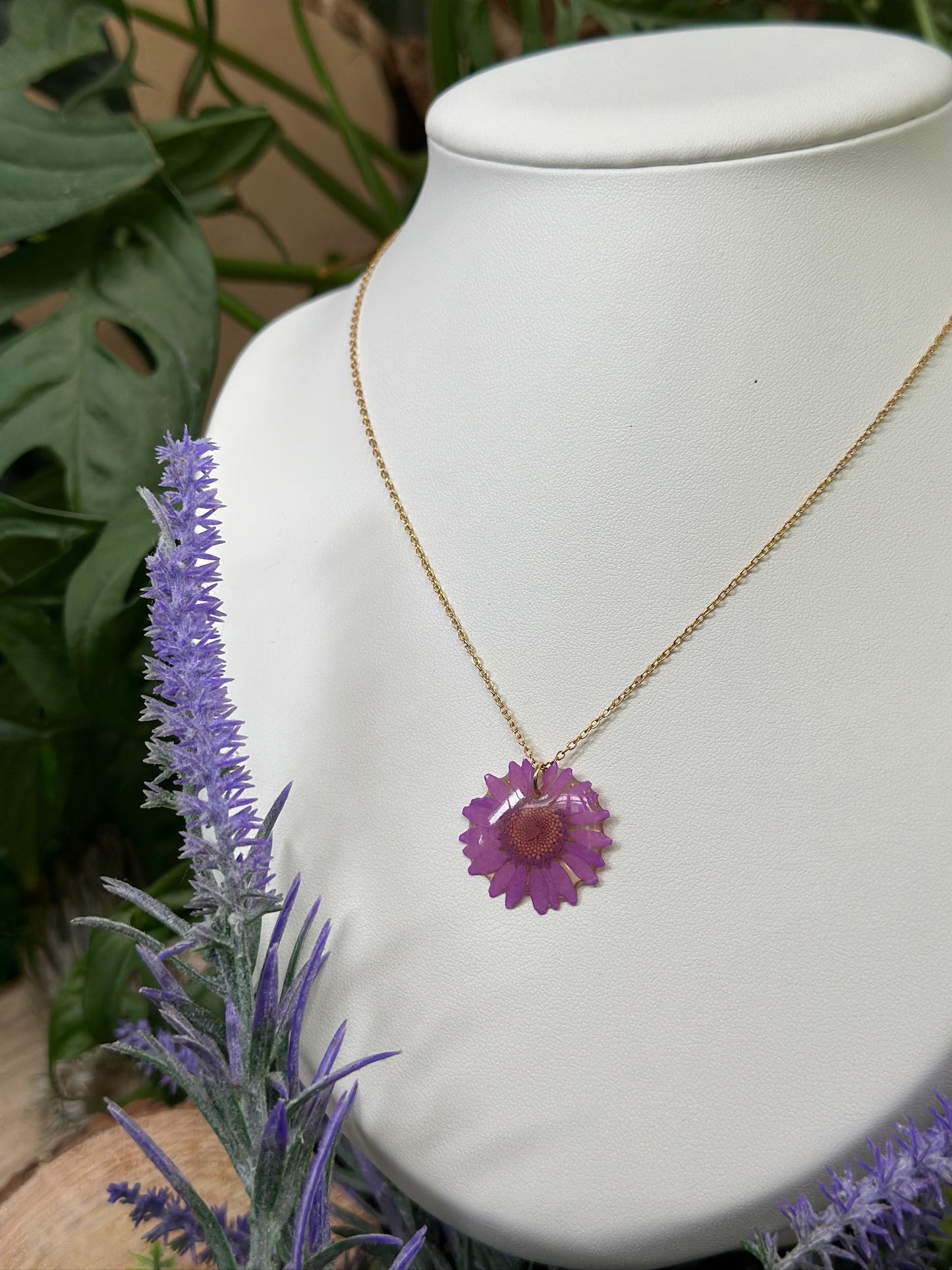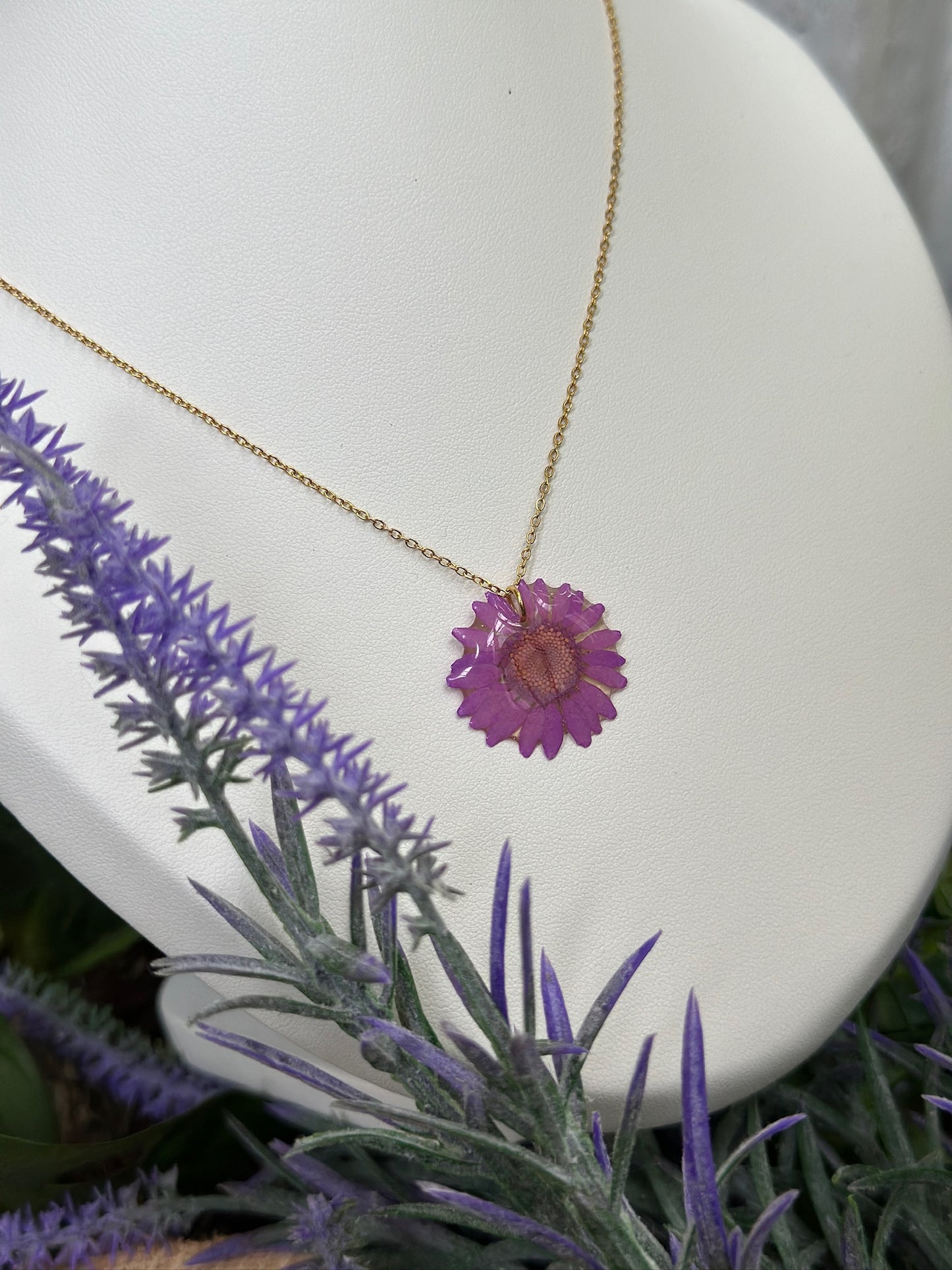 - 👉 Necklace with encapsulated daisy. Stainless steel chain with adjustable height.
