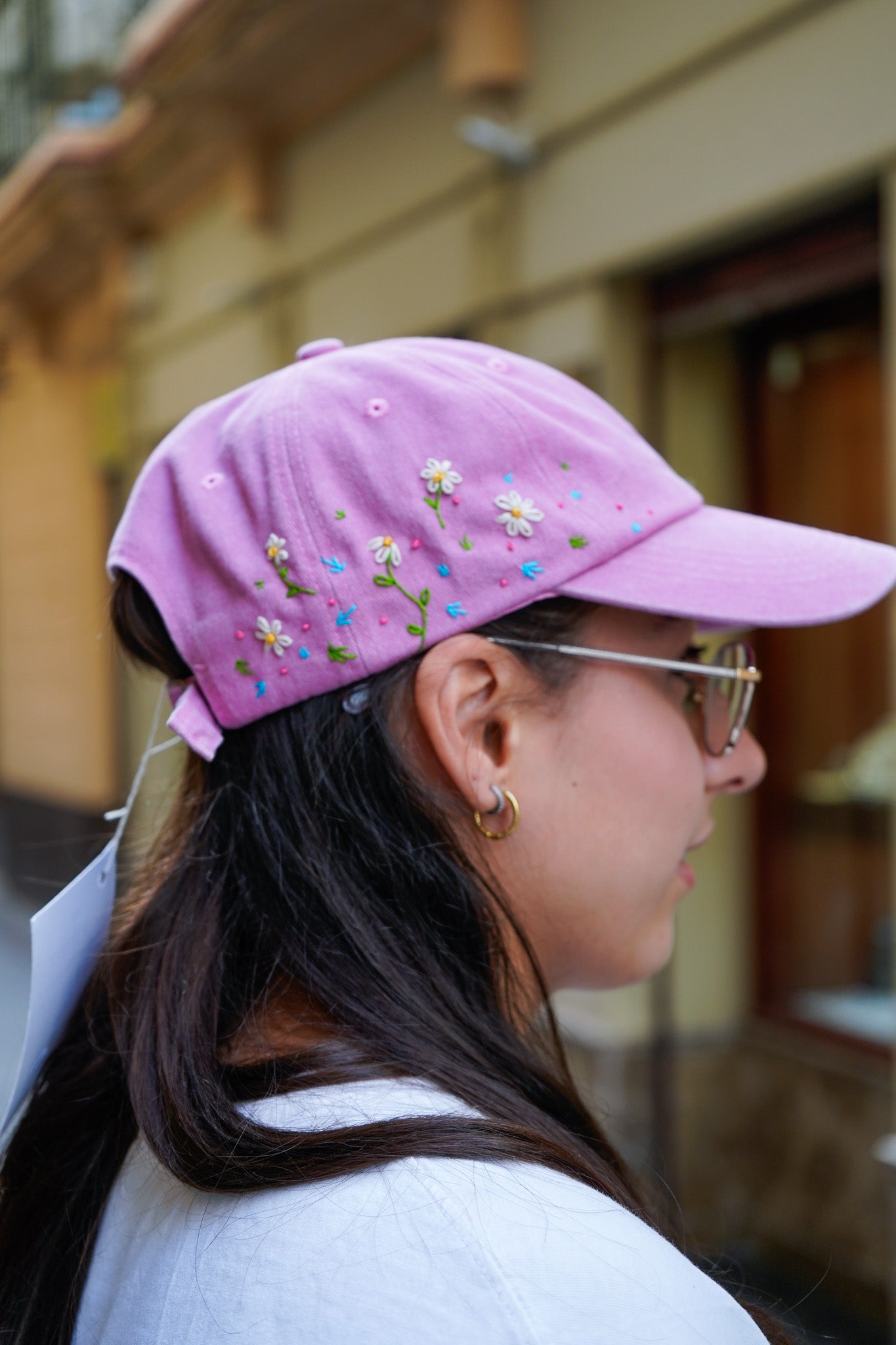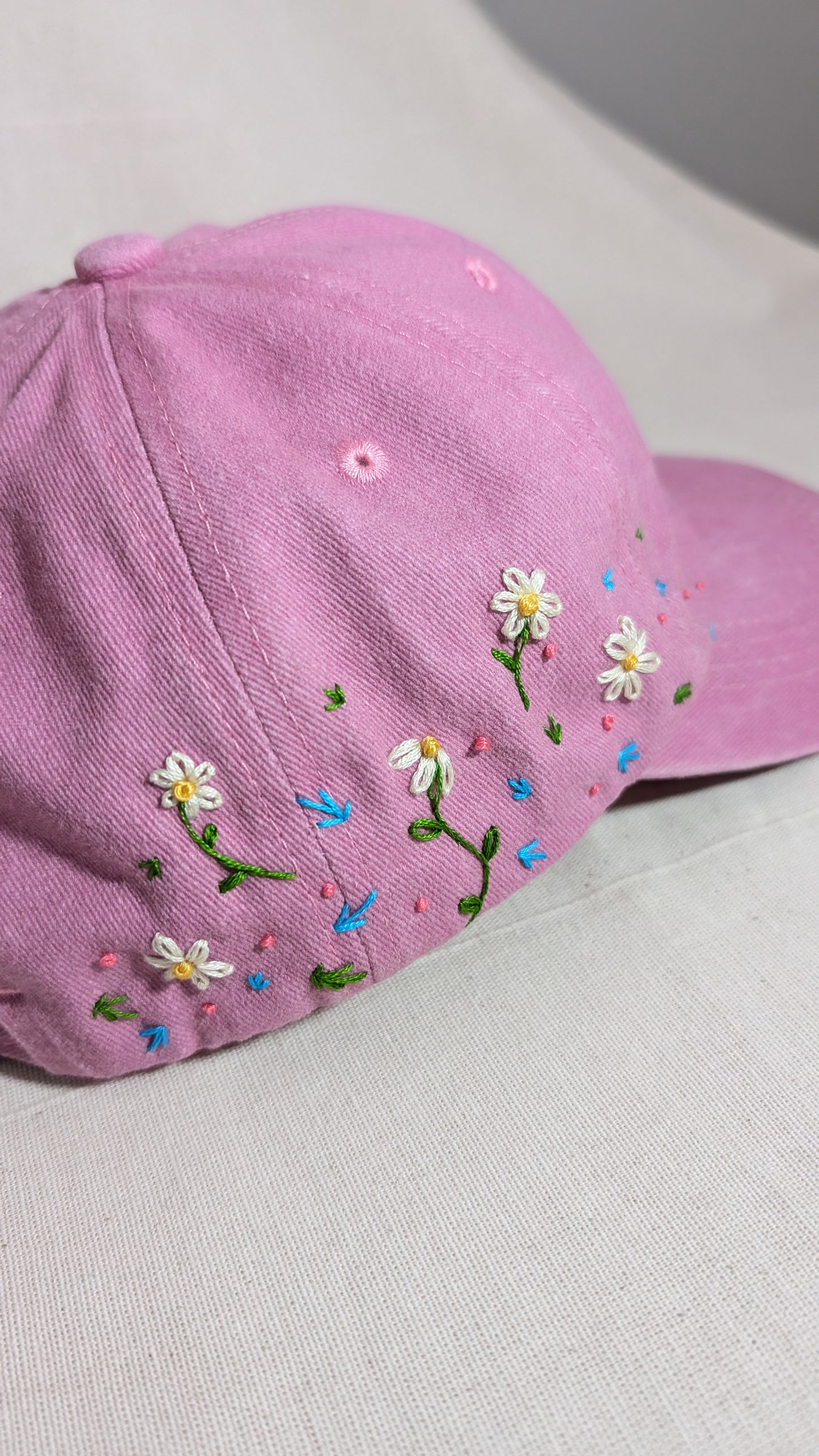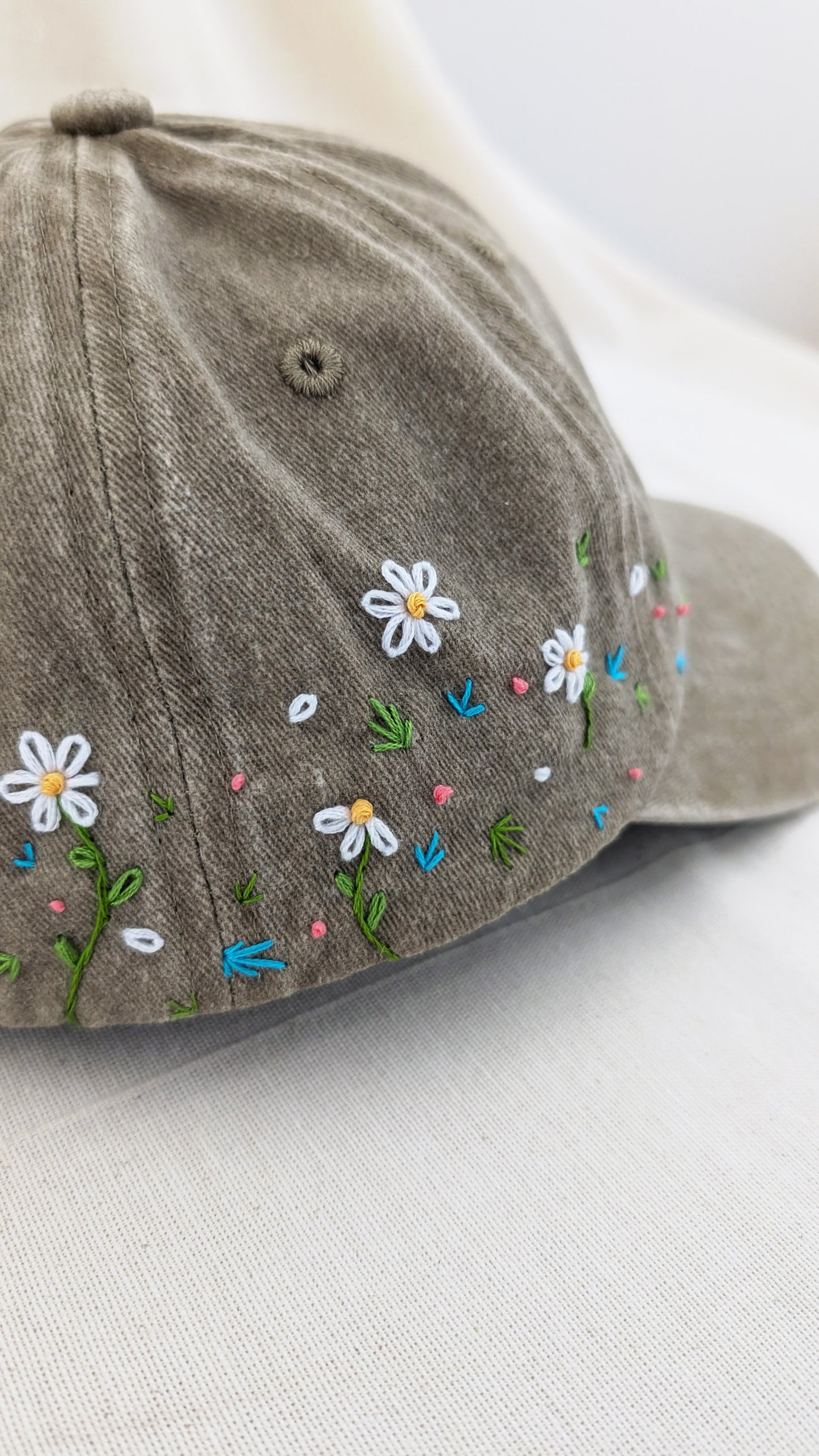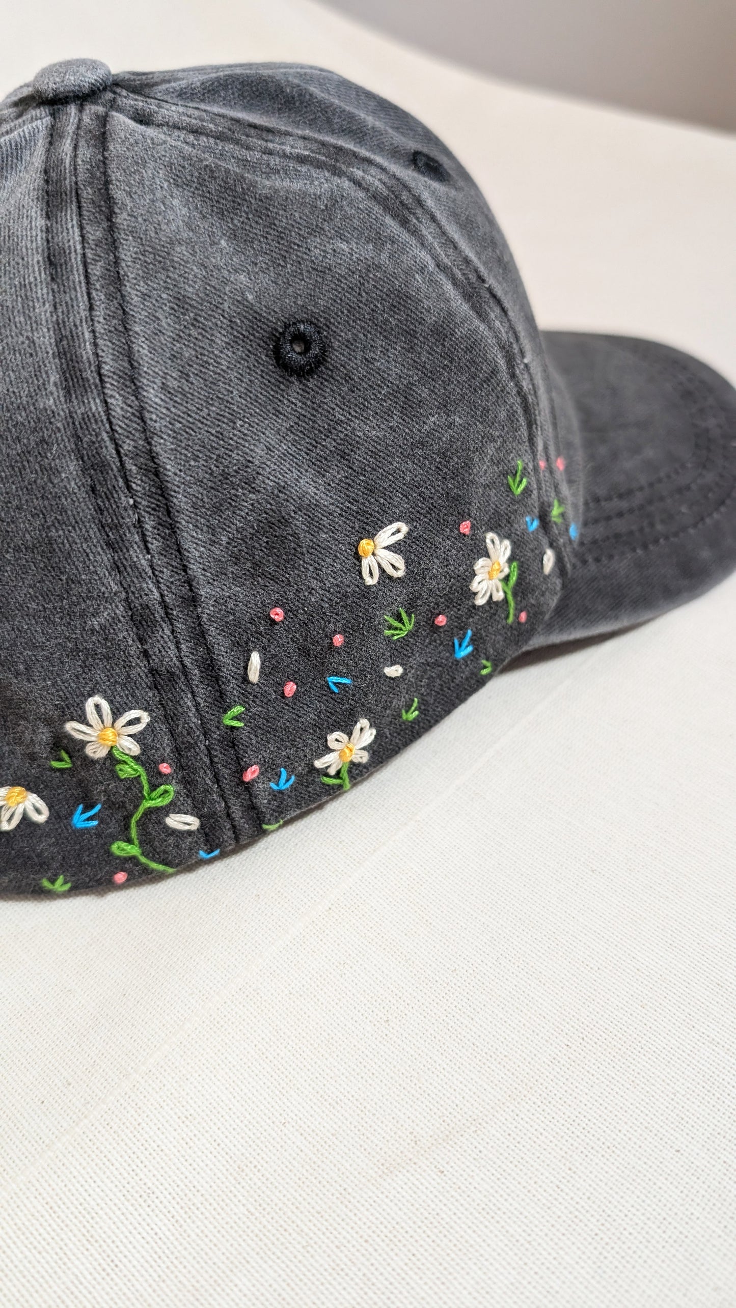 Estas gorras están bordadas a mano alrededor de margaritas y sol.