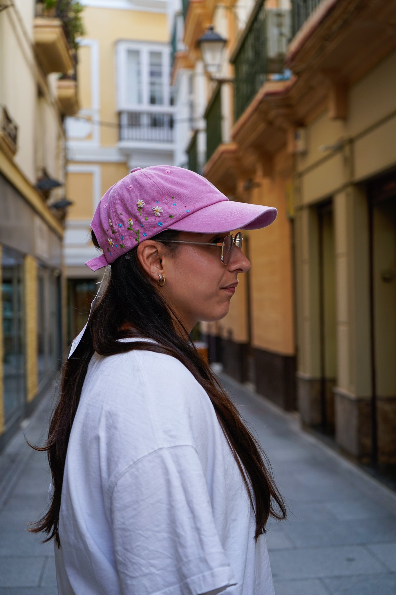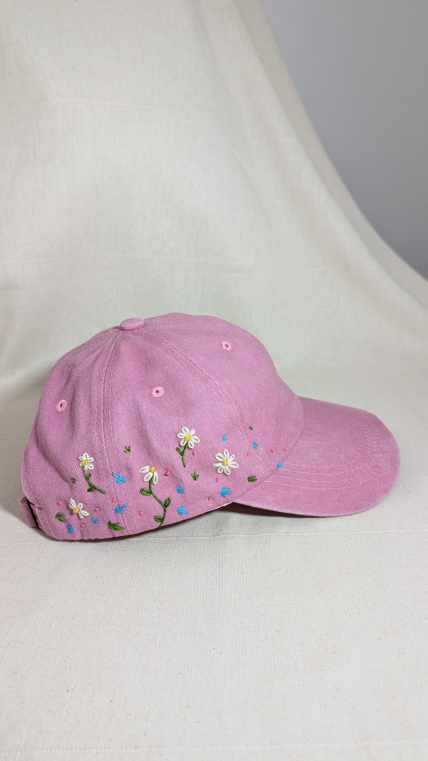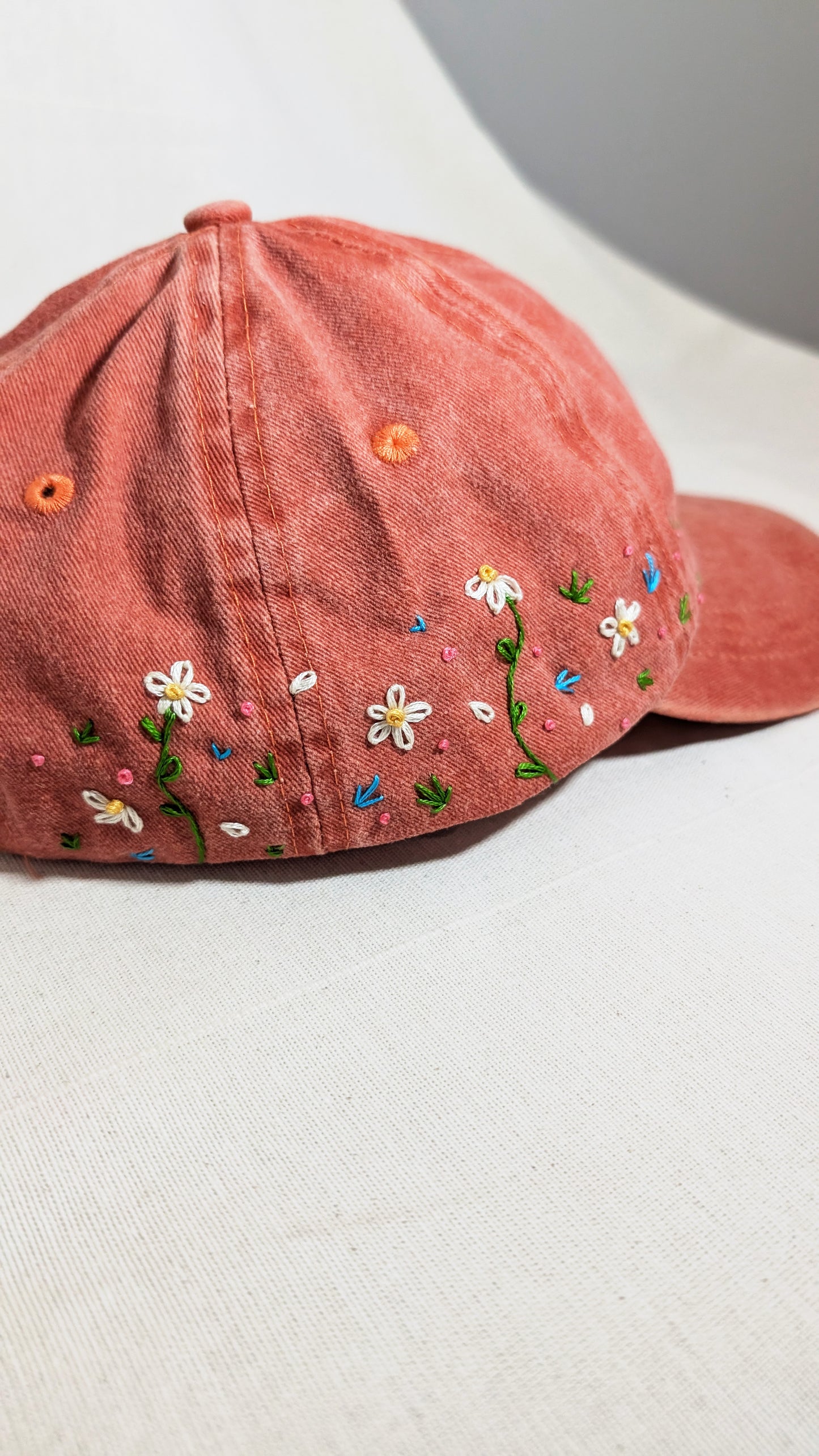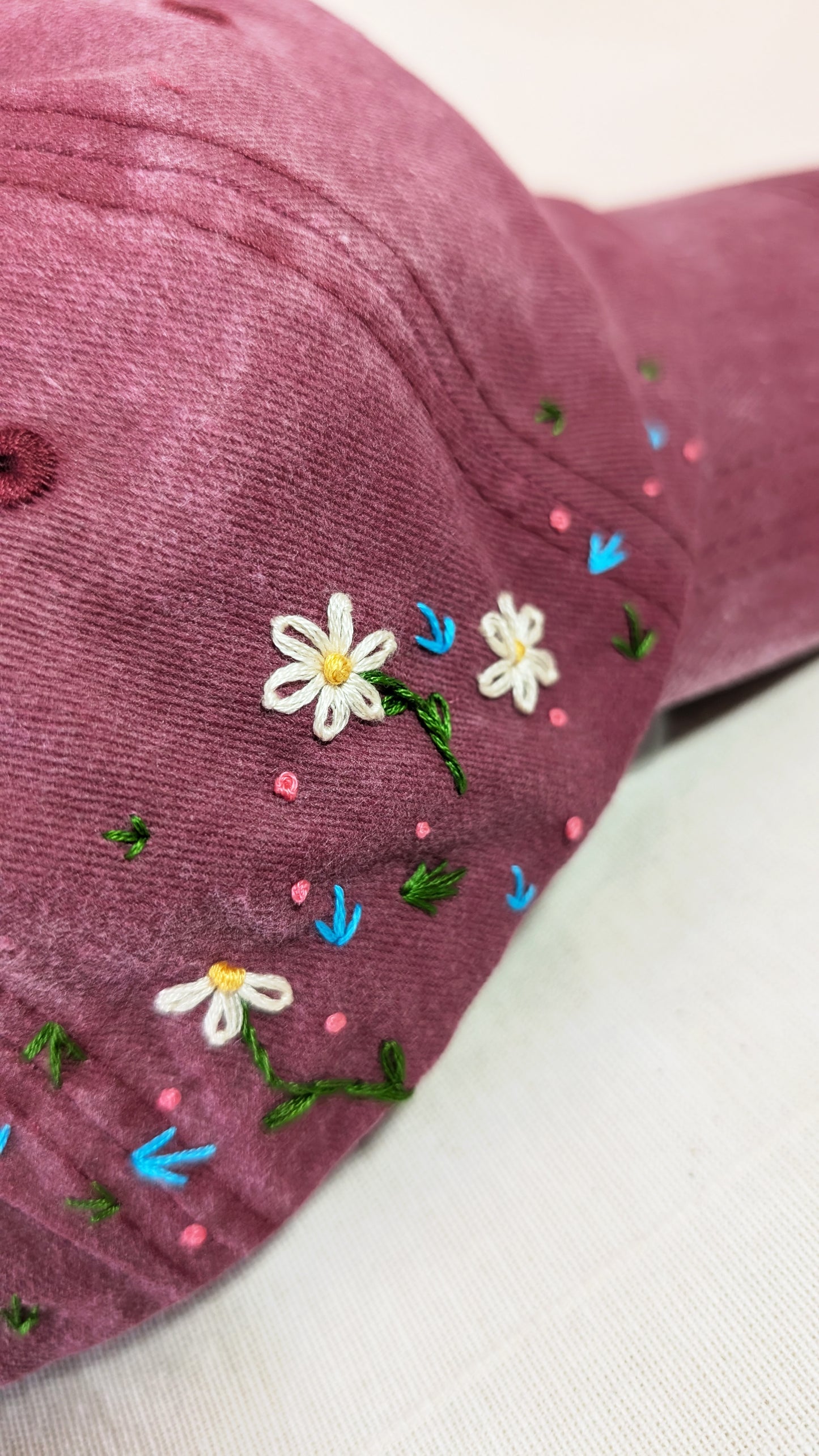 Estas gorras están bordadas a mano alrededor de margaritas y sol.