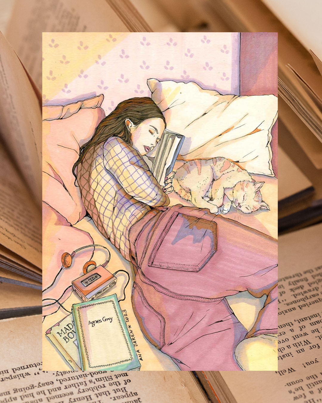 Morning peace is intertwined with reading a book and the company of your cat in bed.