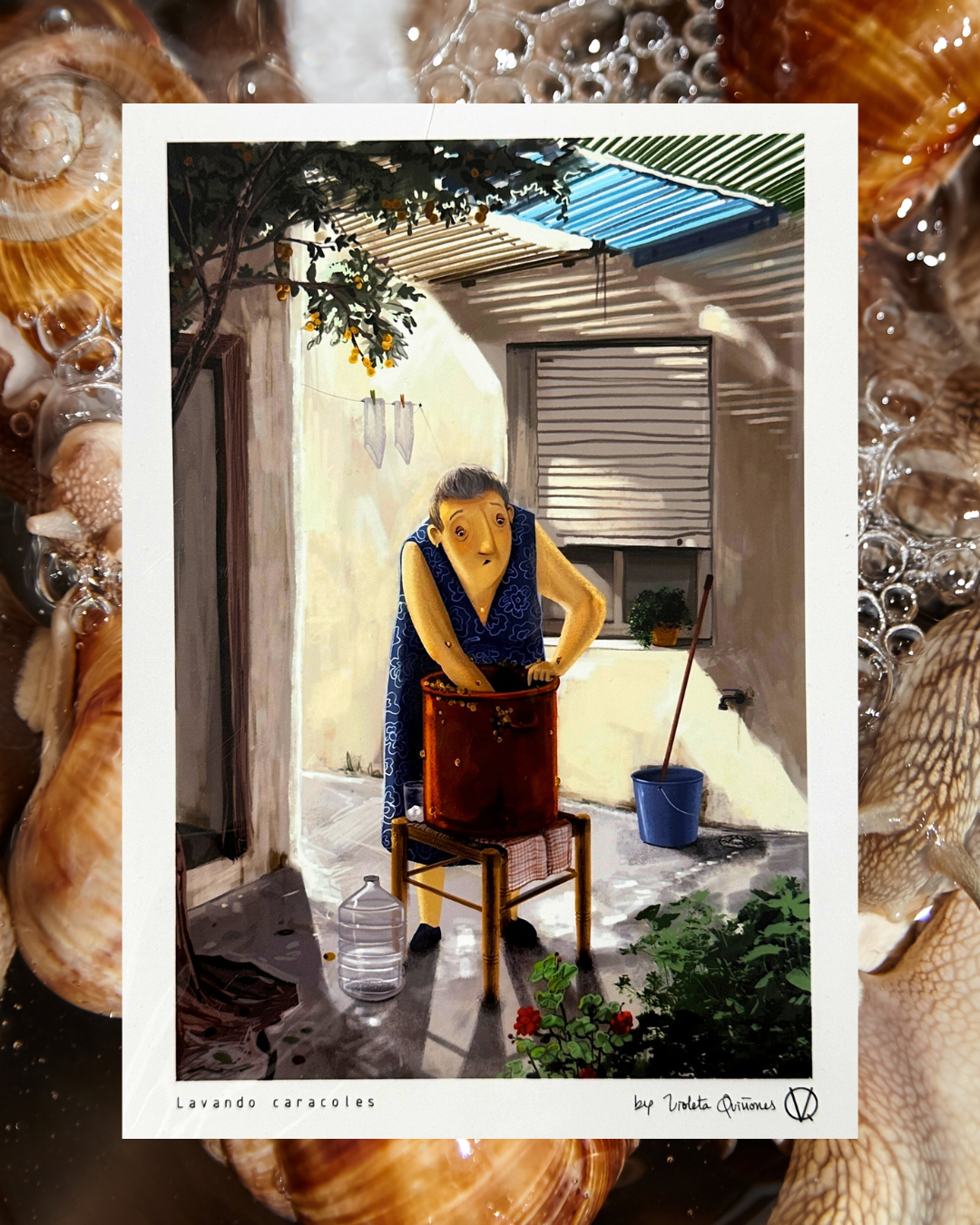 Let Violeta's Granny transport you to the typical Andalusian patio where life happens... while she washes snails! 💦🐌