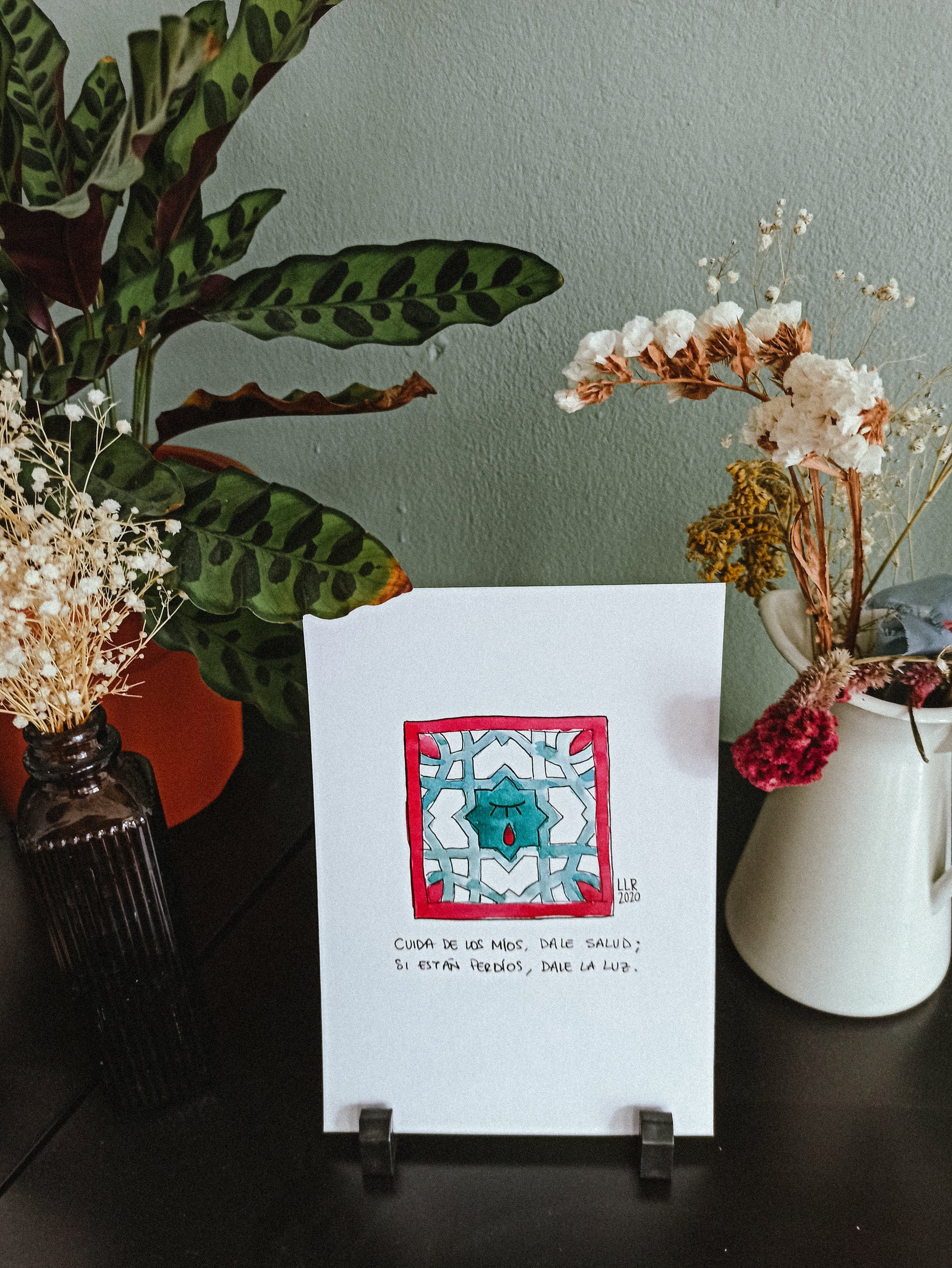 Inspired by the richness of our tiles, this watercolor captures the essence of tradition with a contemporary touch.