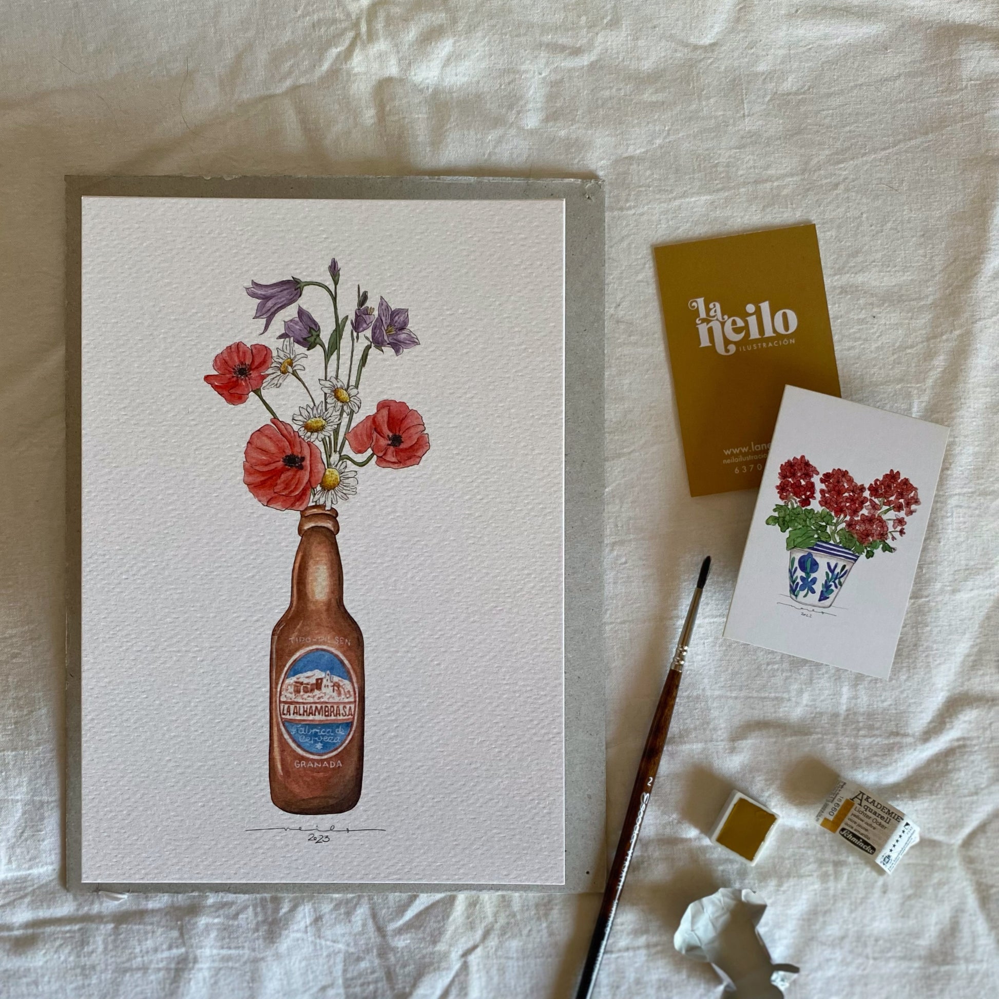 - 👉 Colección de botellas de cerveza vintage favoritas de Nerea, con florecillas propias de cada tierra.