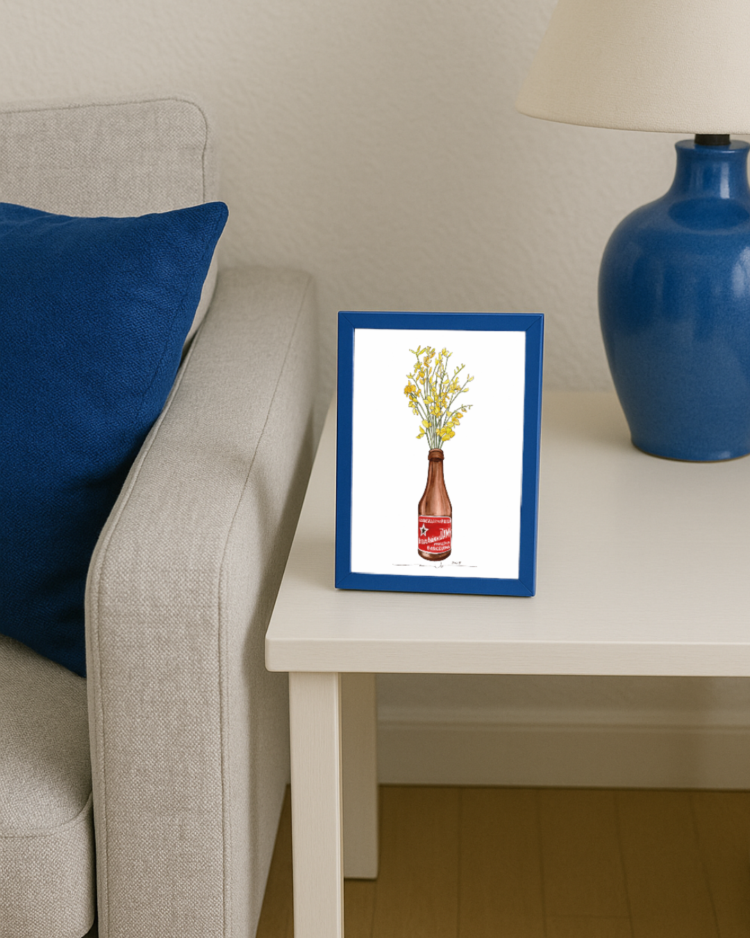 Lámina Botellín Estrella Damm con flores amarillas (ginesta)
