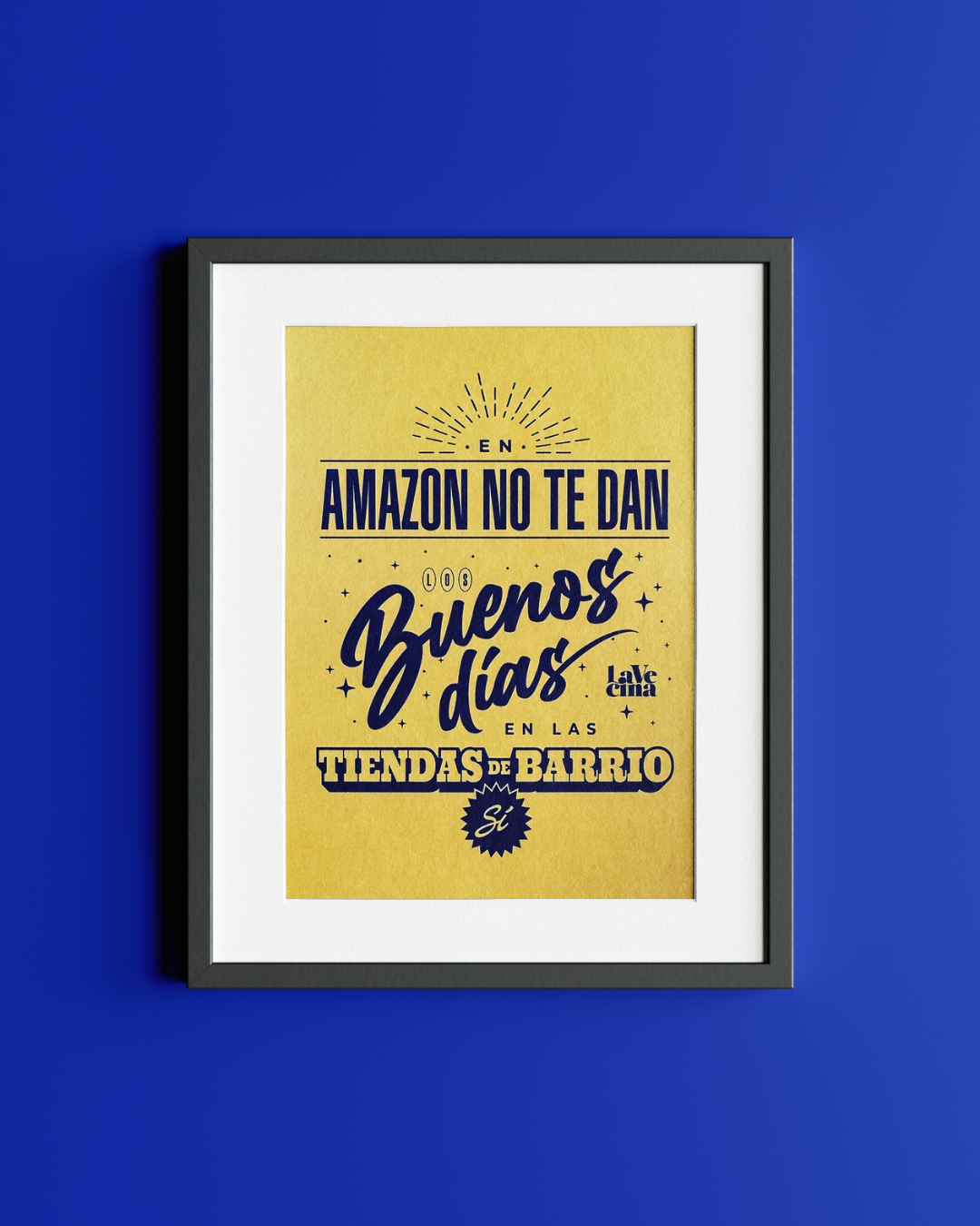 With this print we celebrate the charm of local commerce and the warmth of good mornings that you only find in neighborhood stores.