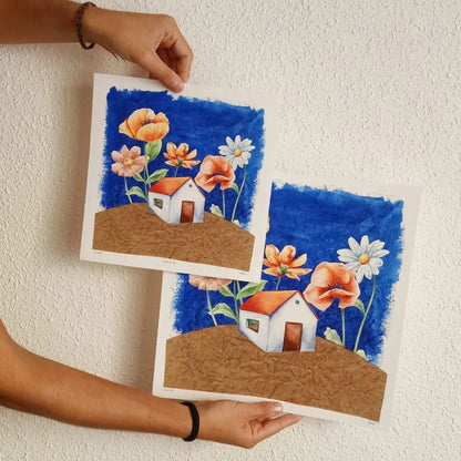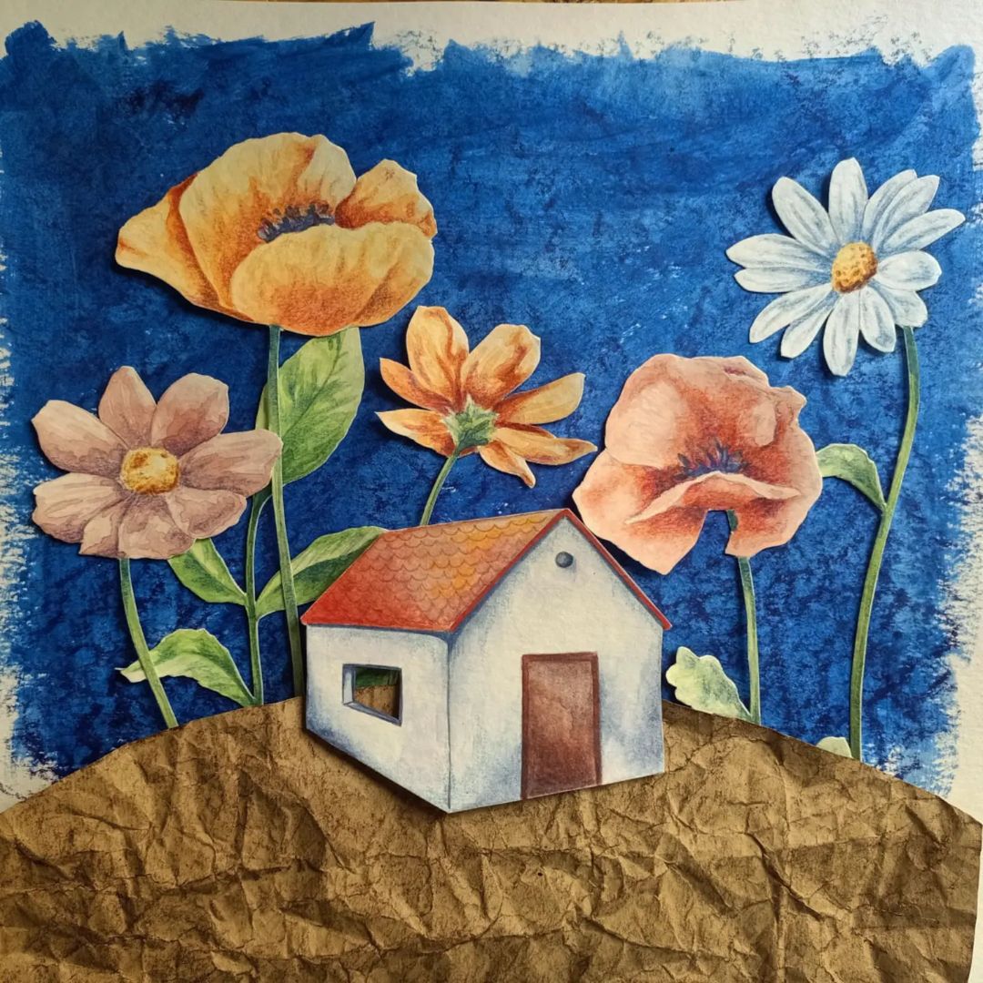 Ana draws and cuts out the little houses and flowers in this home and with everything mixed together creates this sheet fantasy that will look great in any corner of your home.