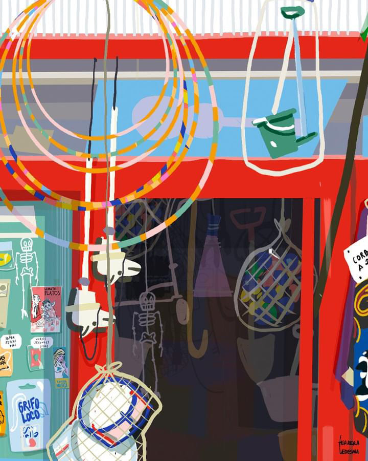 - María es una ilustrada que retrata lo que hace única cada ciudad: desde el comercio local, a cines, plazas…