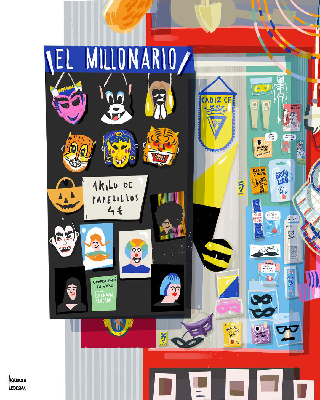 🖌️Ramón heredó la tienda de su padre (el verdadero ‘millonario’), se especializó en la venta de artículos de broma y también detalles relacionados con el Carnaval, como disfraces y complementos, además del souvenir de la tierra.