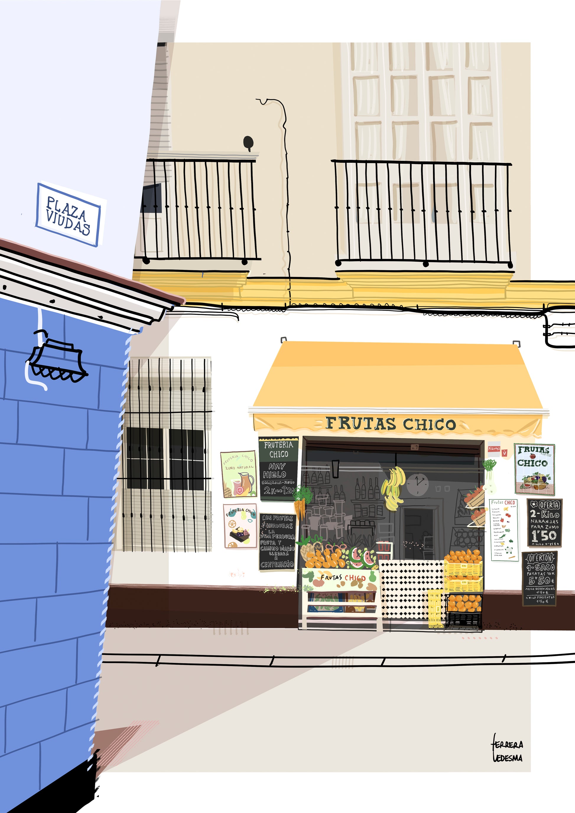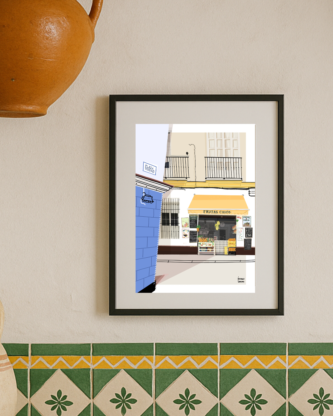 - María es una ilustrada Sevillana que retrata lo que hace única cada ciudad: desde el comercio local, a cines, plazas…