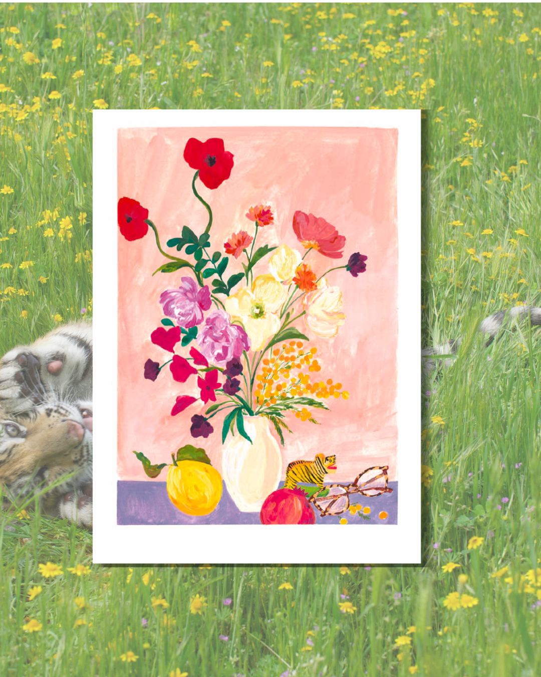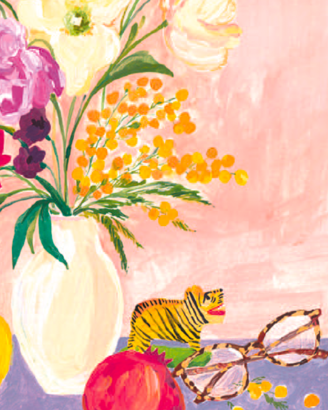 Menos bodegones de cestas y más flores con tigres y gafas animal print.