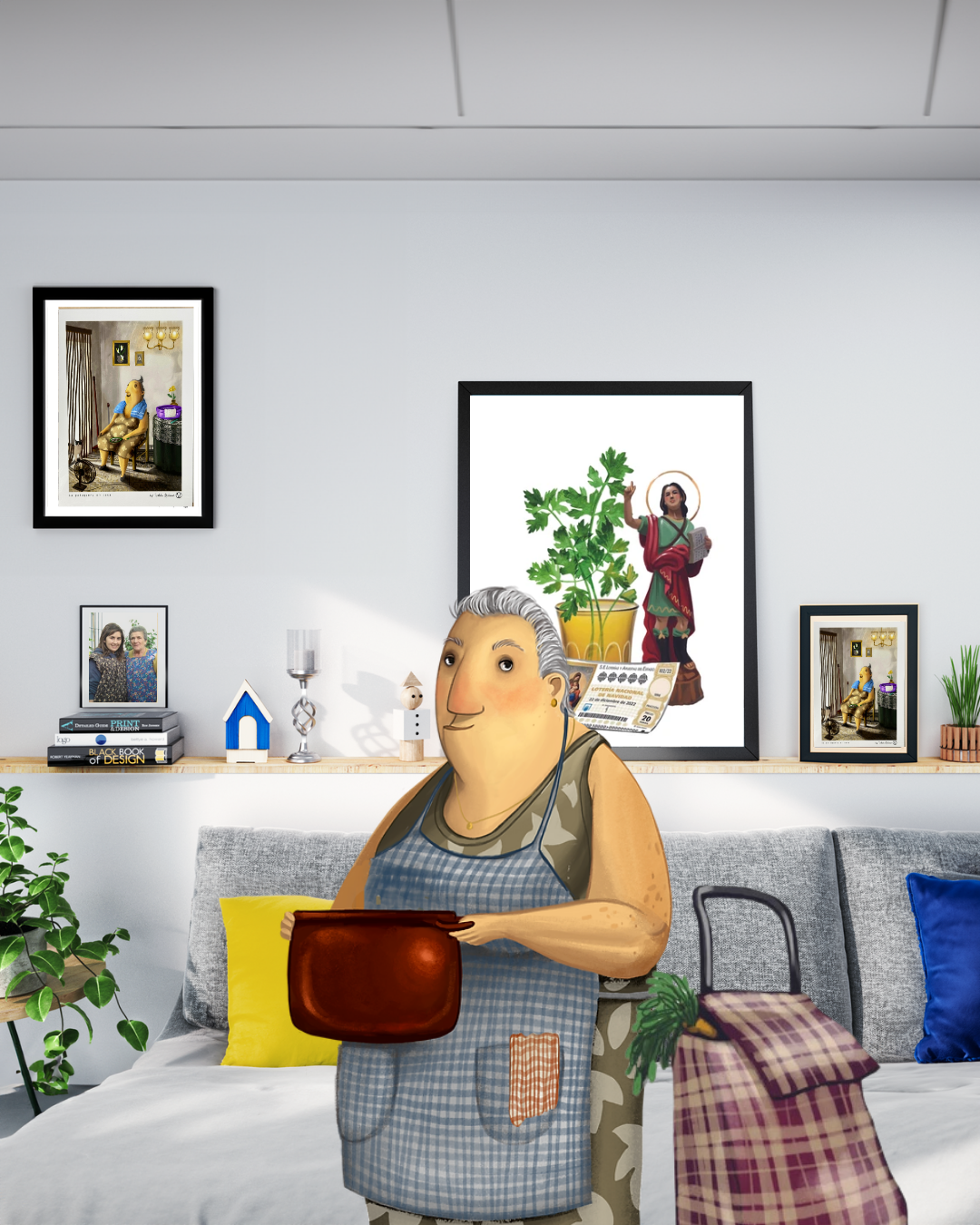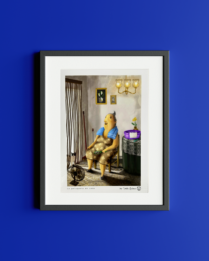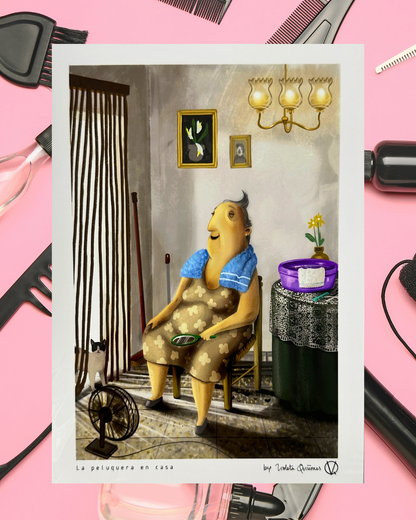 Grandma at the hair salon at home art print