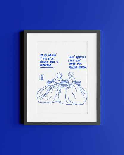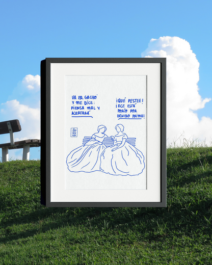 This print captures a little piece of everyday life with two women chatting on a bench.