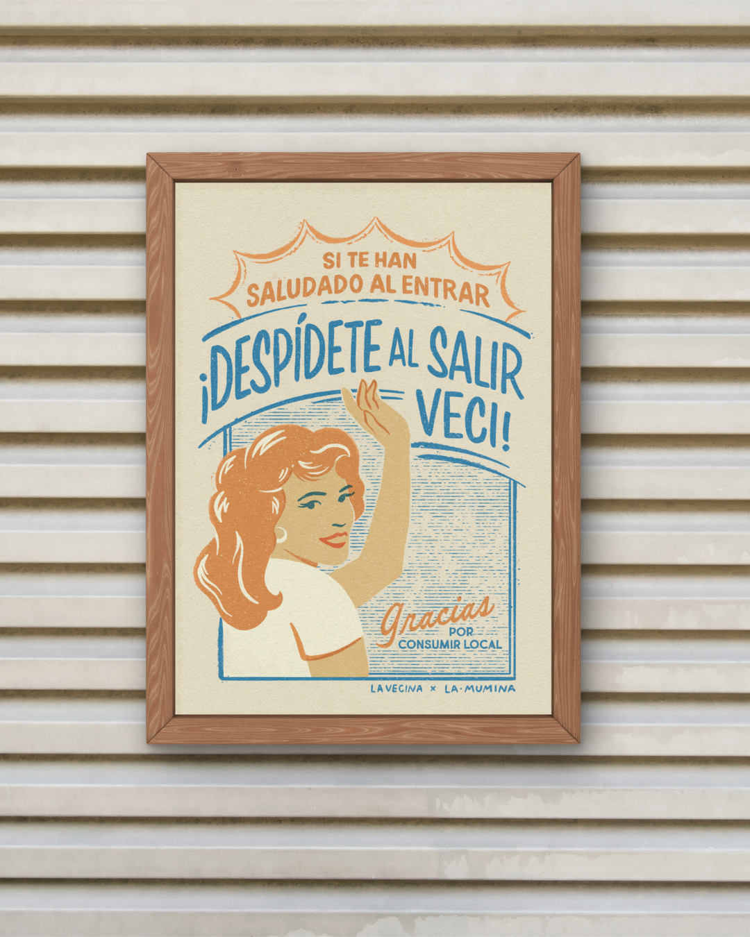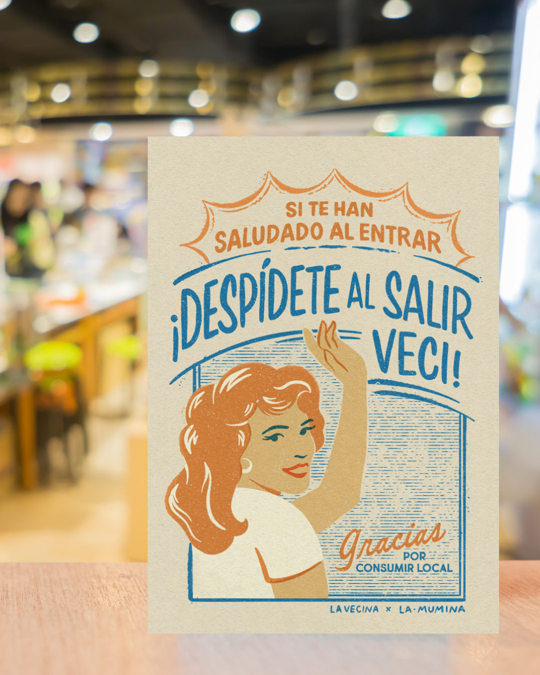 Esta lámina nace de un dibujo de La Mumina que nos regaló para colgar a la salida de nuestra tienda. Sale por concienciar de saludar y despedirse al entrar en una tienda.