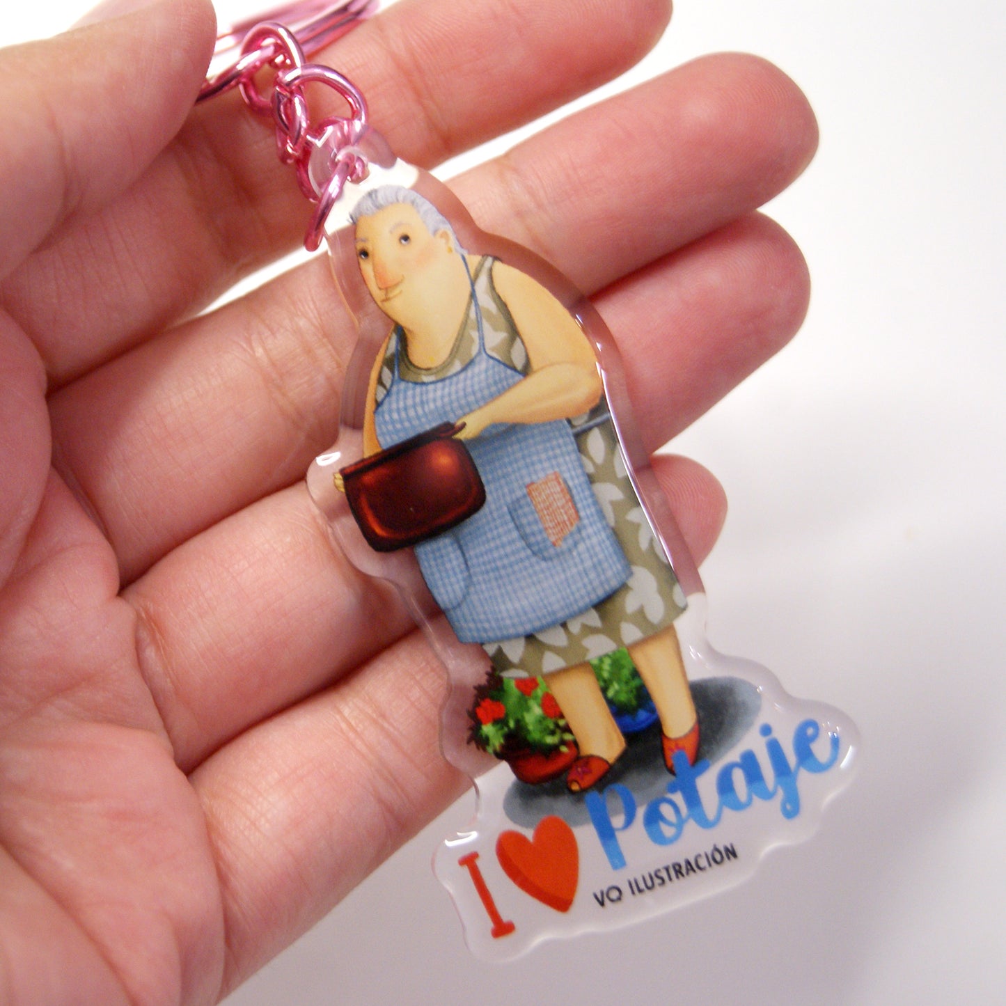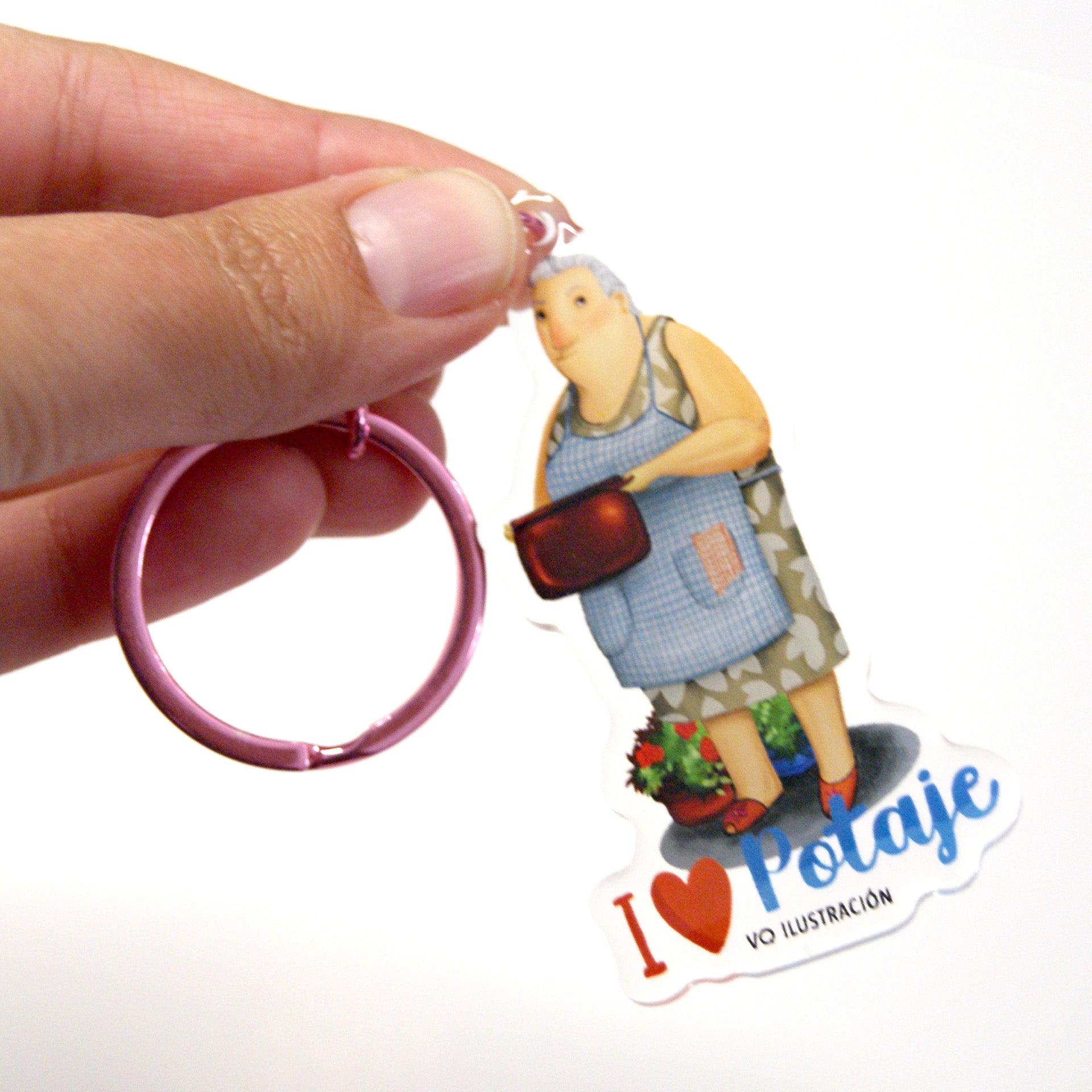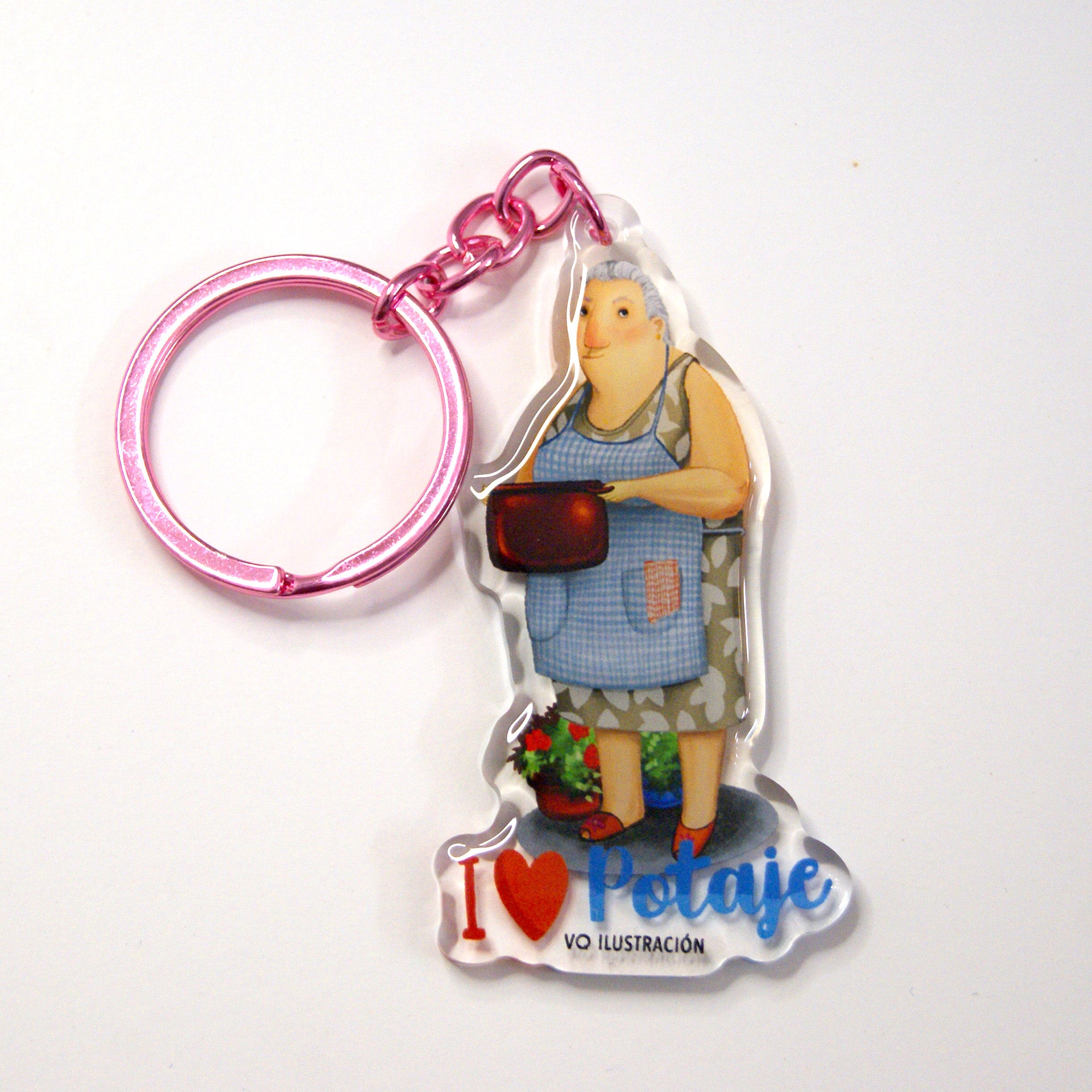 Este llavero con una abuela y un potaje es mu andaluz y mu de to.