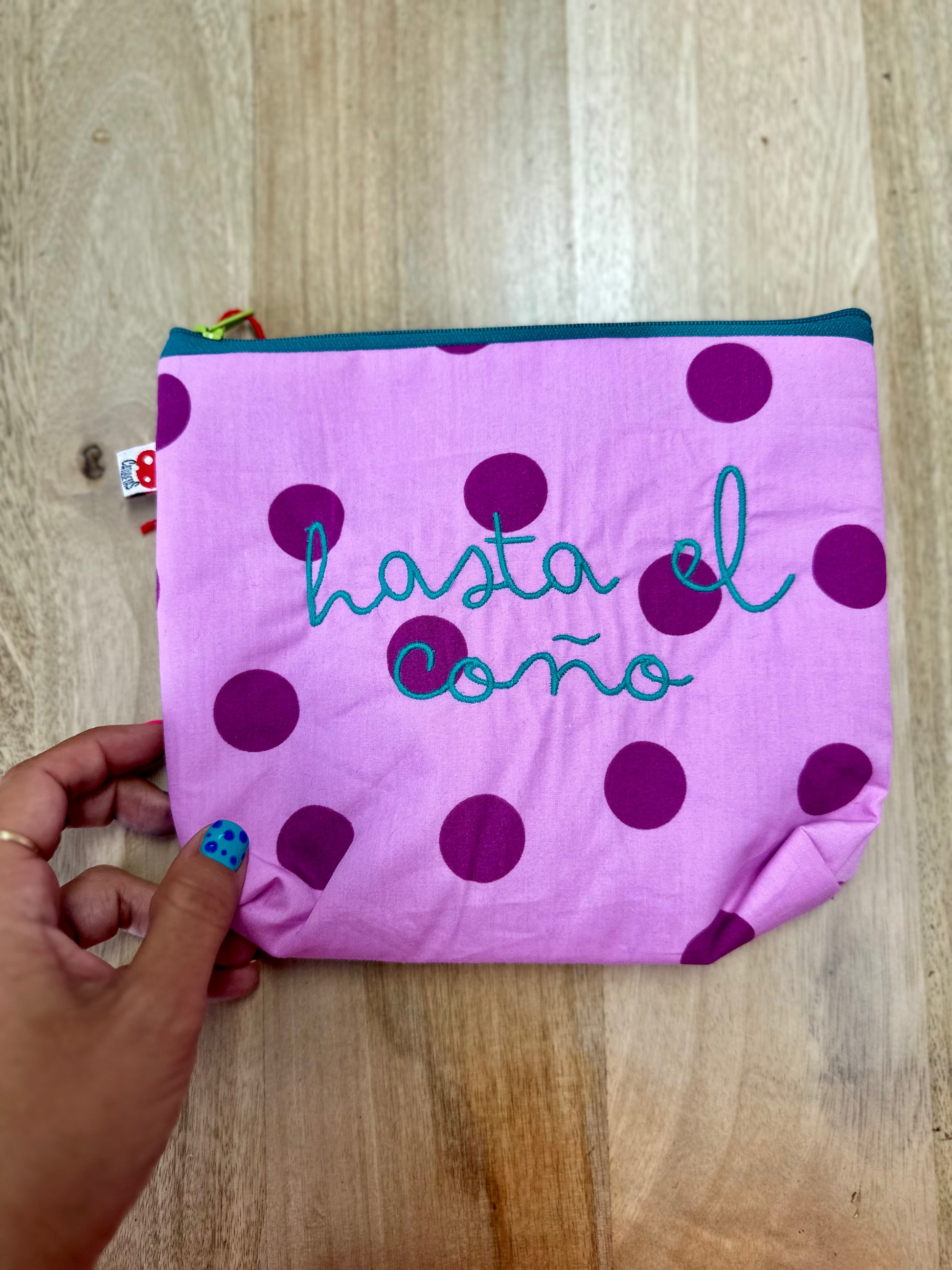 Neceser con lunares bordaito con hasta el coño, perfecto pa veranito.