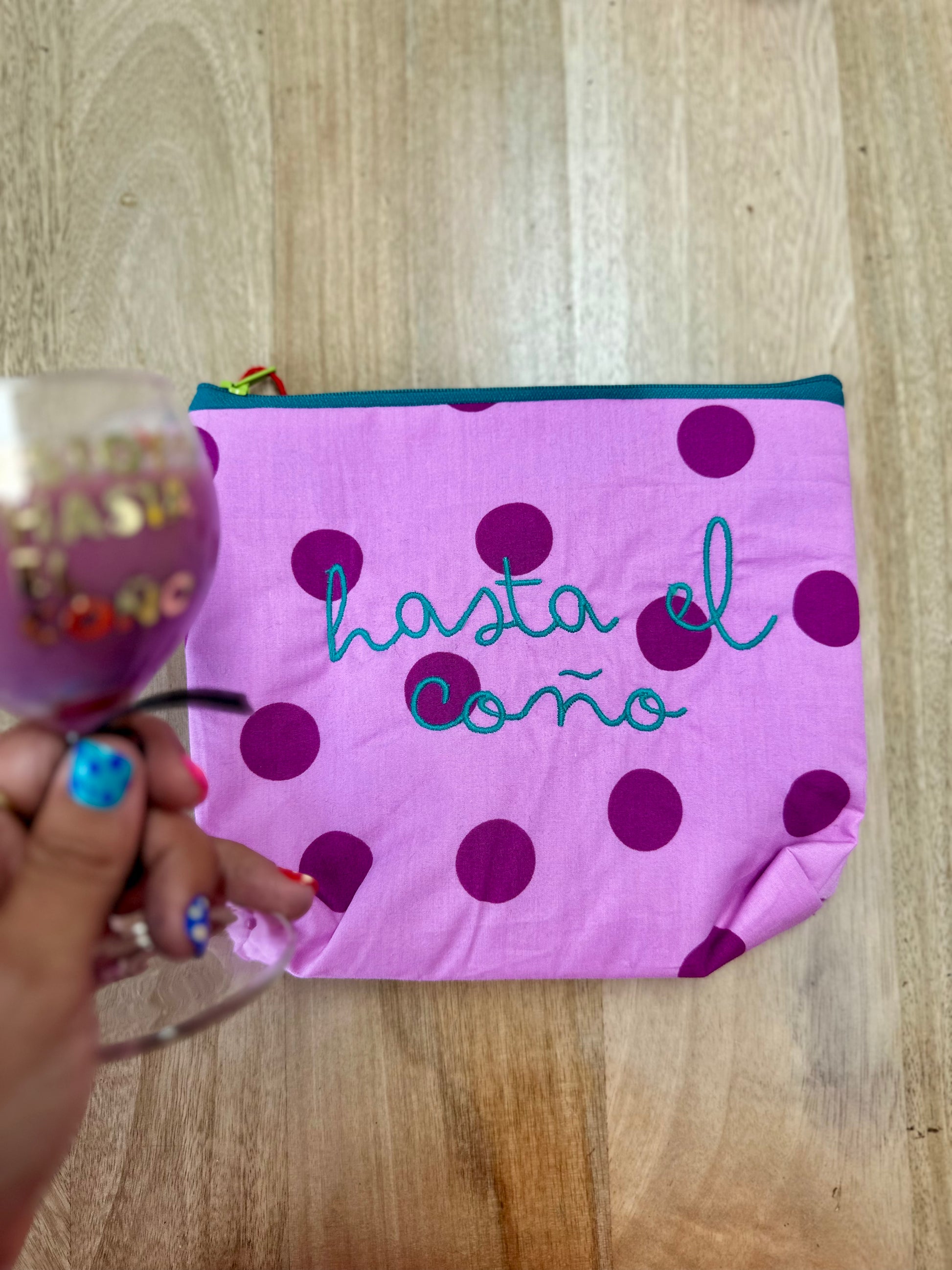 Lila lunares grandes fucsia letra turquesa - Hasta el coño - Neceser
