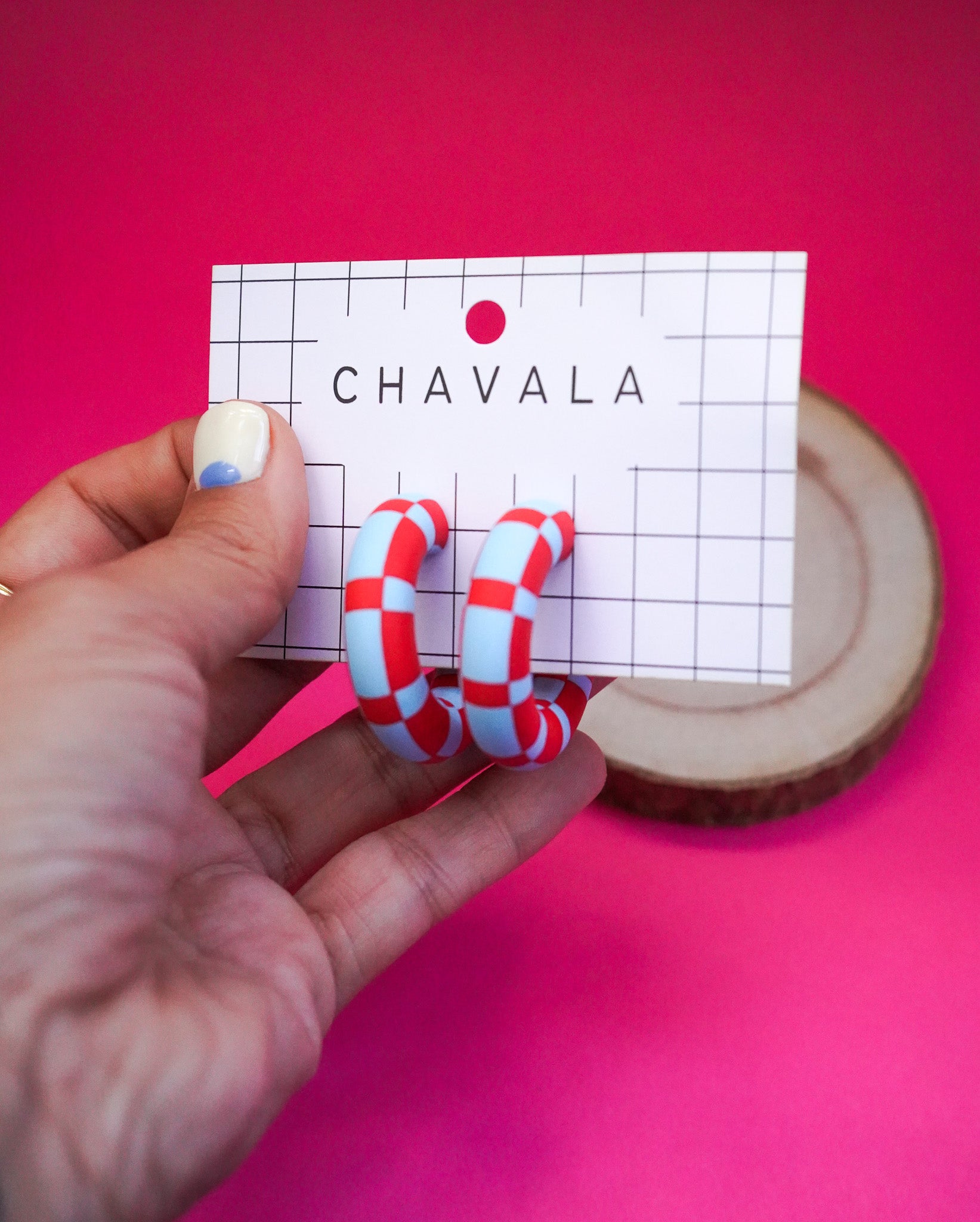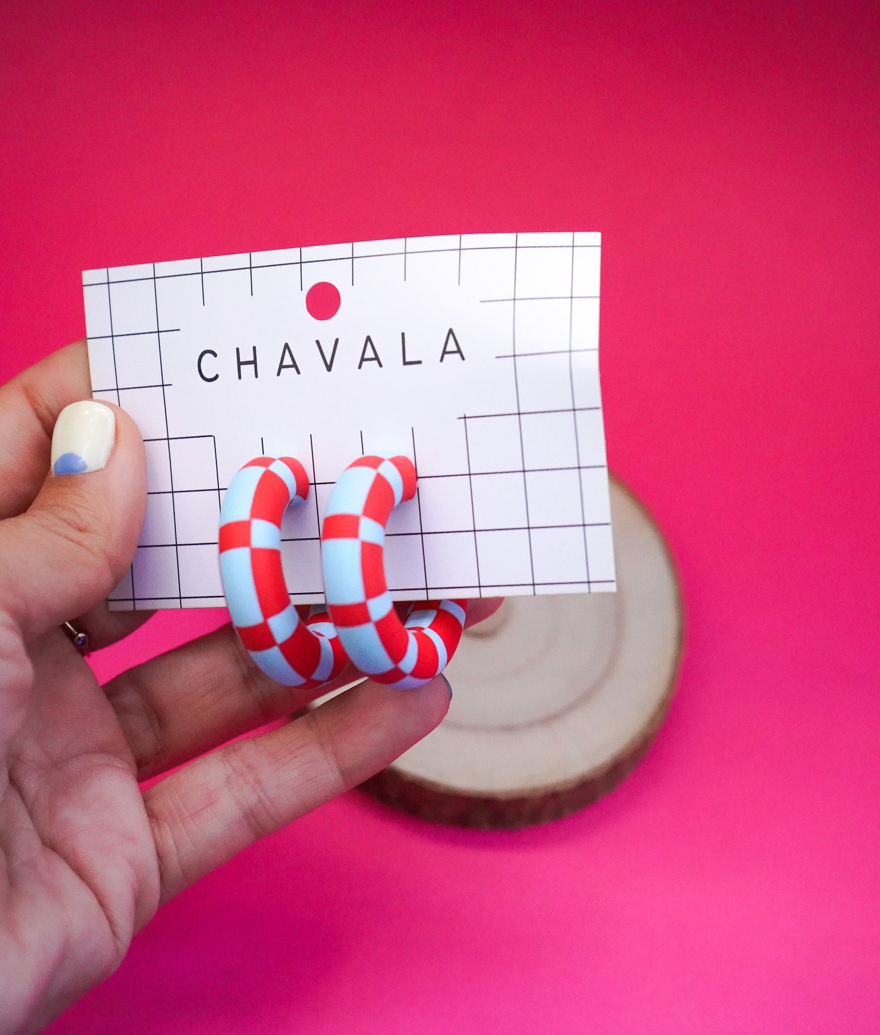 Estos pendientes a líneas azules y rojas rollo damero pa la mejor del mundo entero!!!