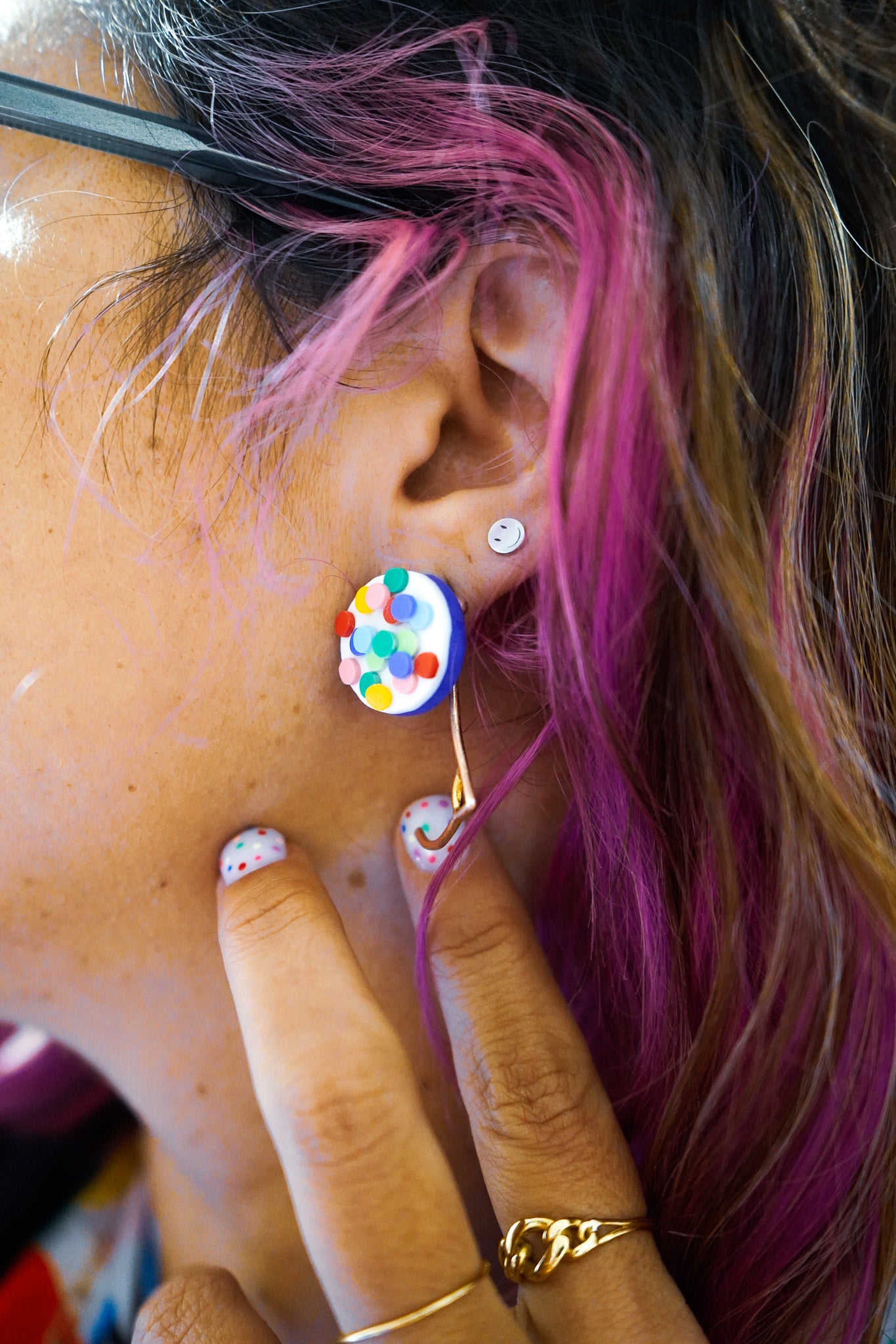El blanco de la arcilla polimérica es el lienzo para los papelillos de colores, creados uno a uno y colocados con cariño encima creando un relieve en el pendiente que es top!