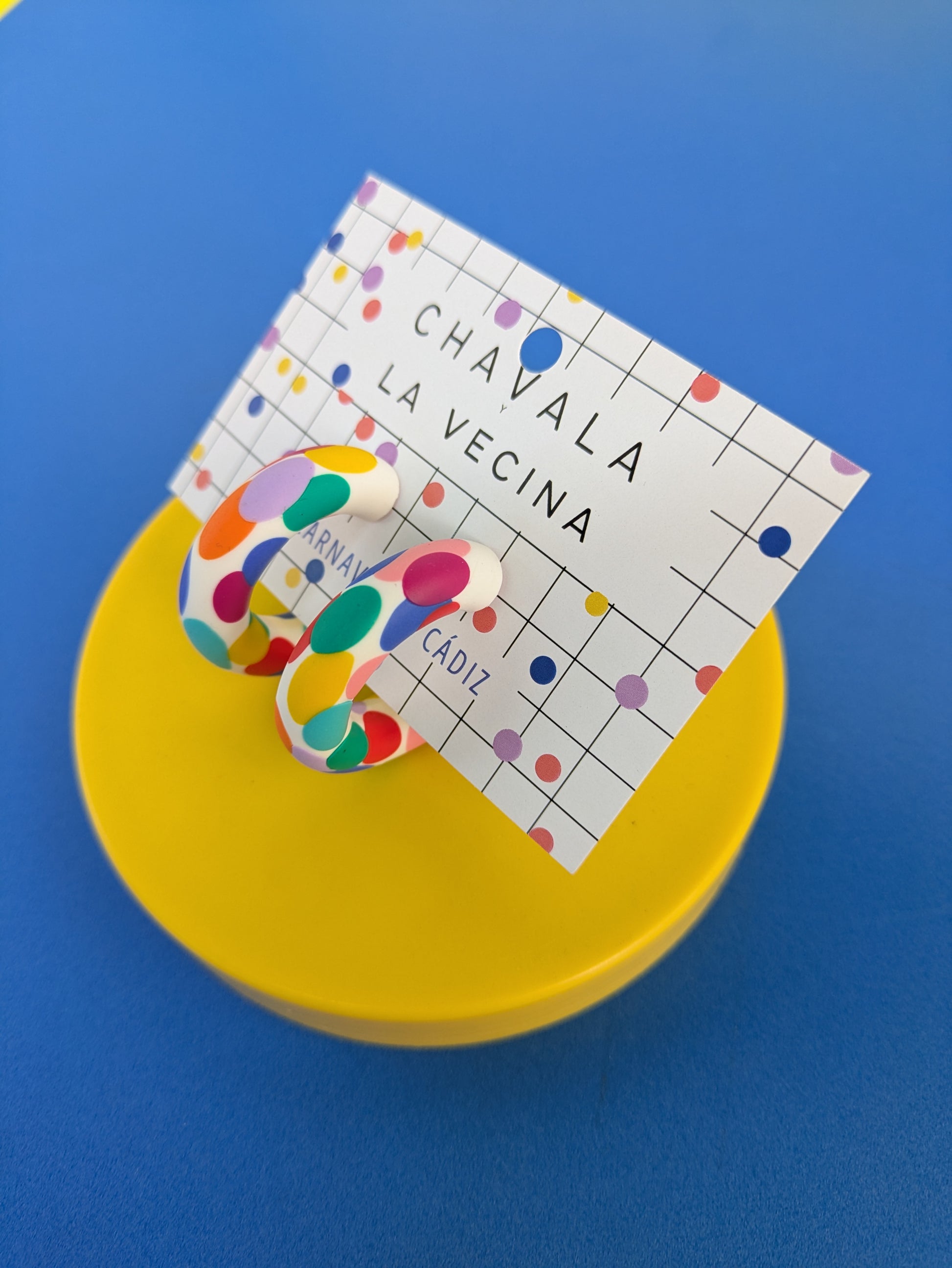A unique collaboration for the Cádiz Carnival between Chavala and La Vecina with these earrings that have the essence of the Cádiz festival: the papelillos.